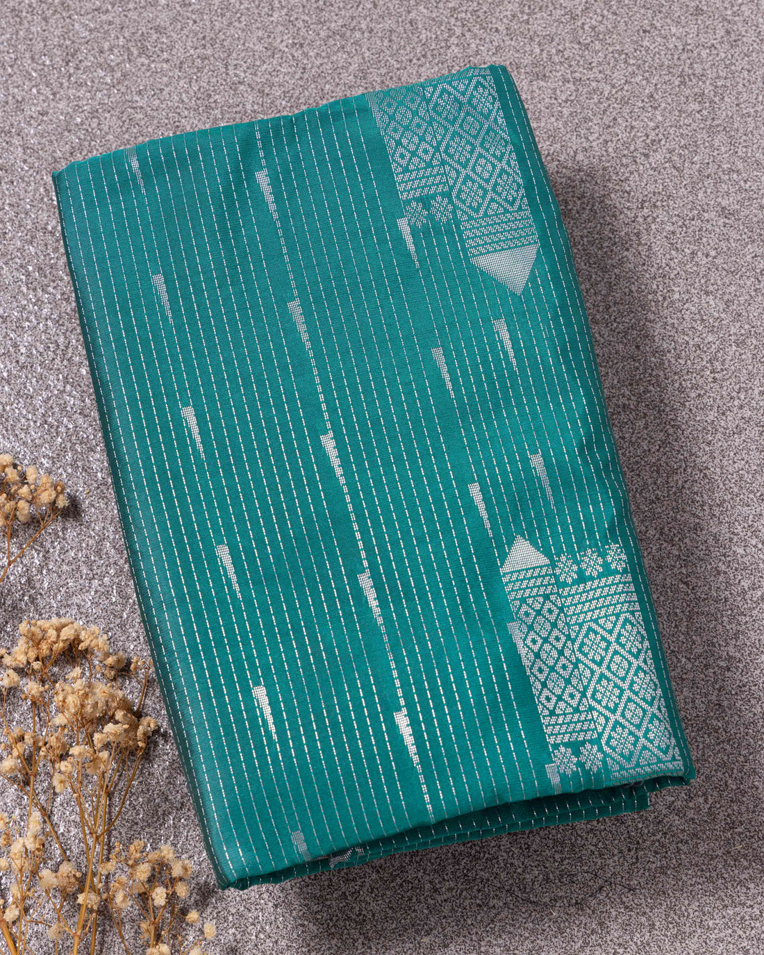 Elegant Semi Tissue Saree with Subtle Zari Border and Lustrous Finish – Green