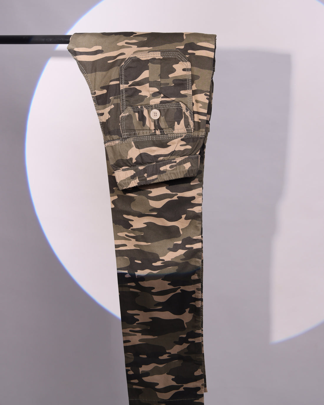 Men’s Printed Cargo Pant with Multiple Flap Pockets and Drawstring Waist - Multi