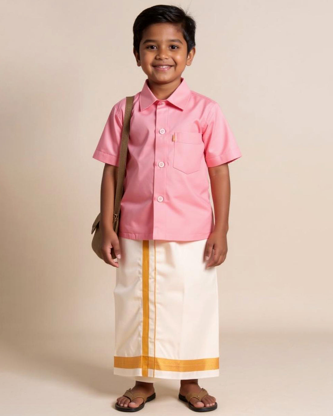 Traditional Kids Shirt and Dhoti Set - Pink