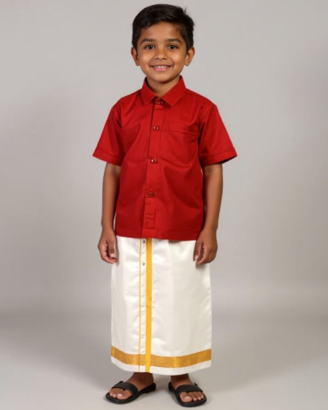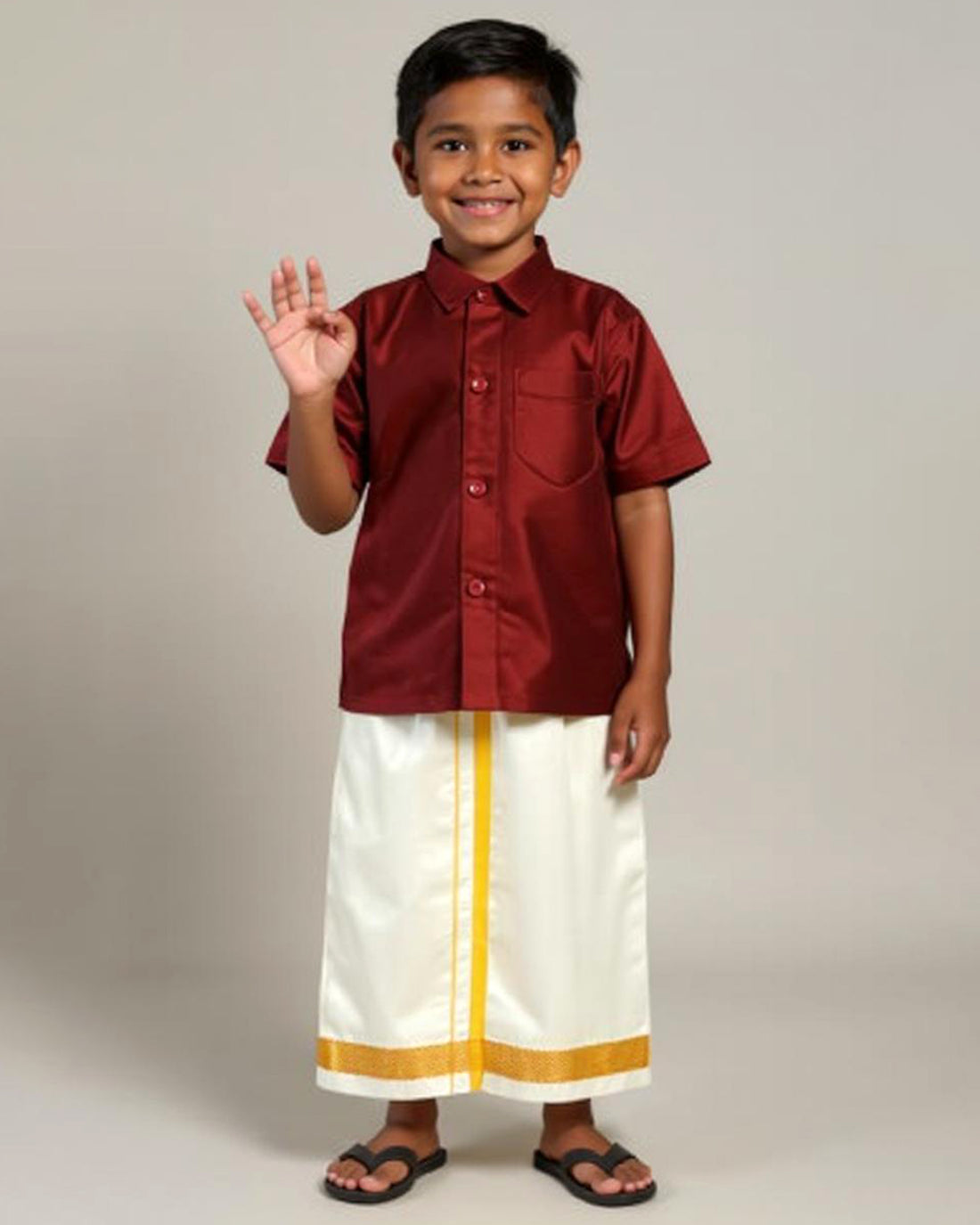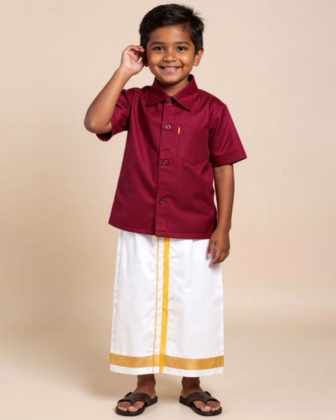 Traditional Kids Shirt and Dhoti Set - Maroon
