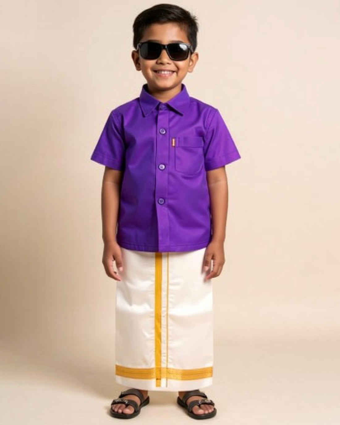 Traditional Kids Shirt and Dhoti Set - Violet