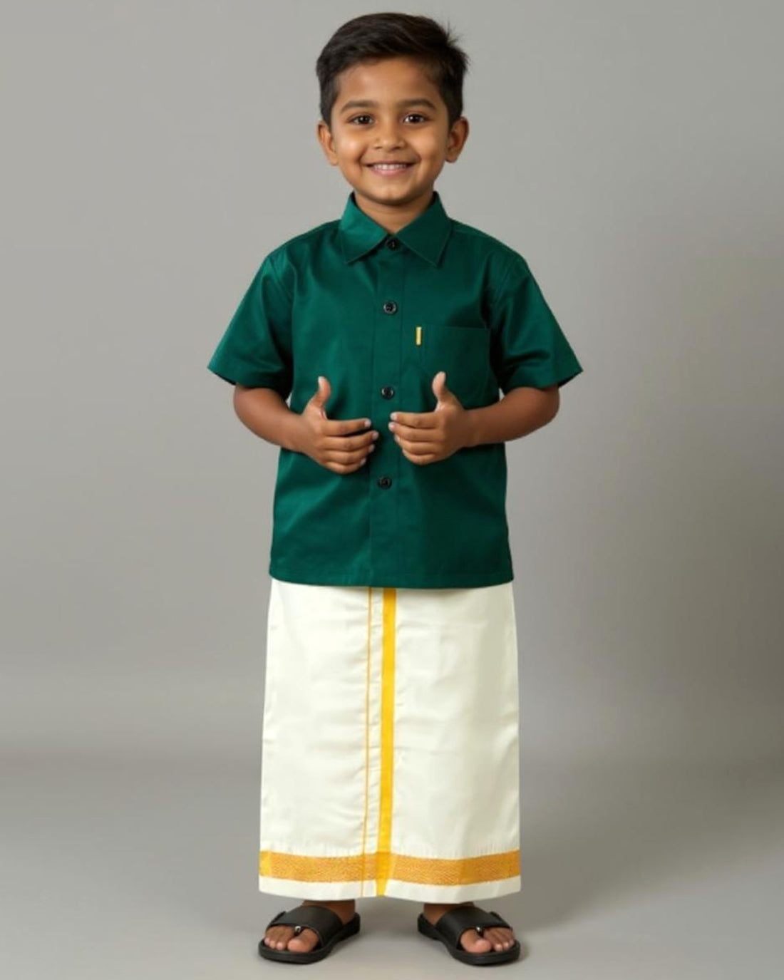 Traditional Kids Shirt and Dhoti Set - Bottle Green