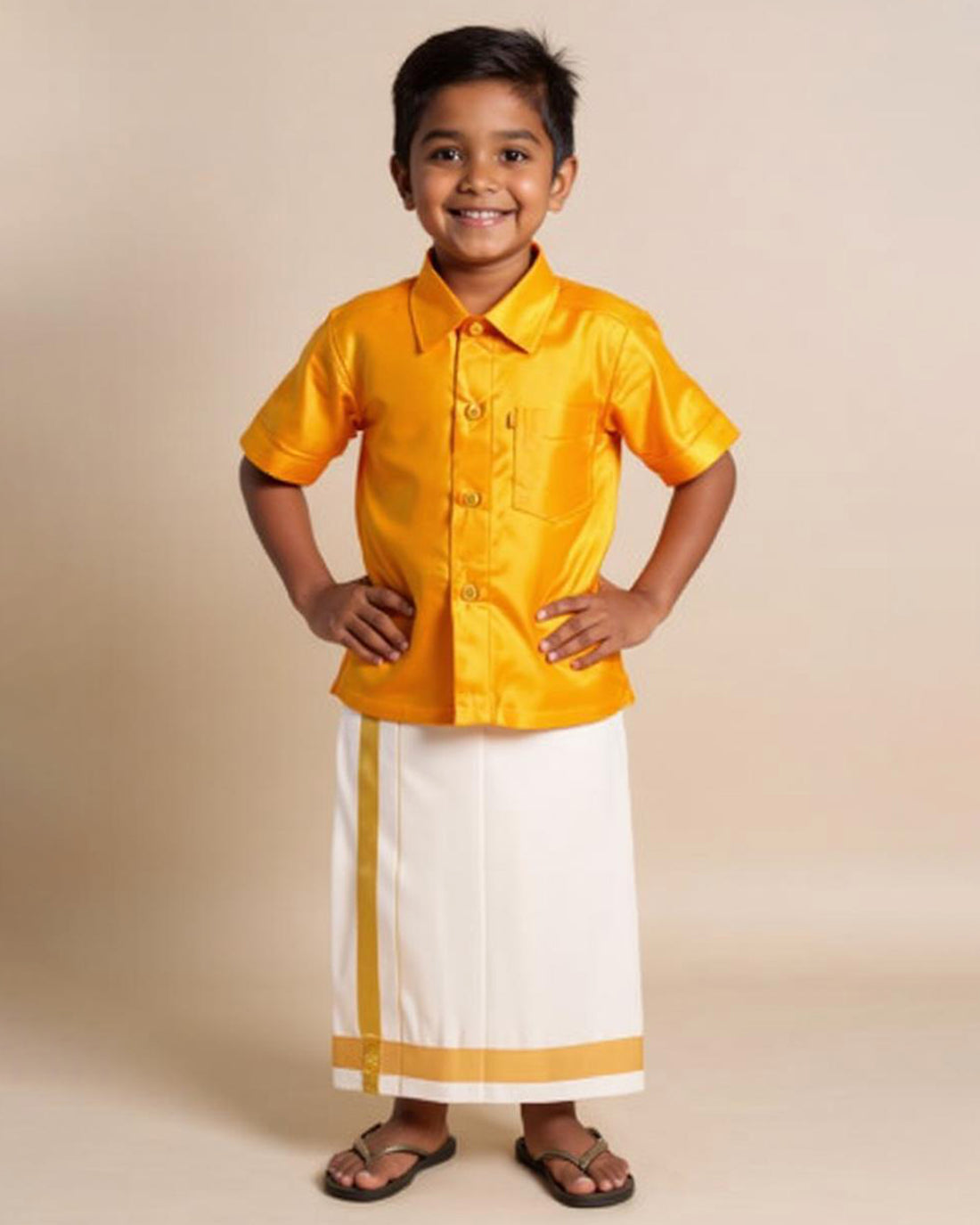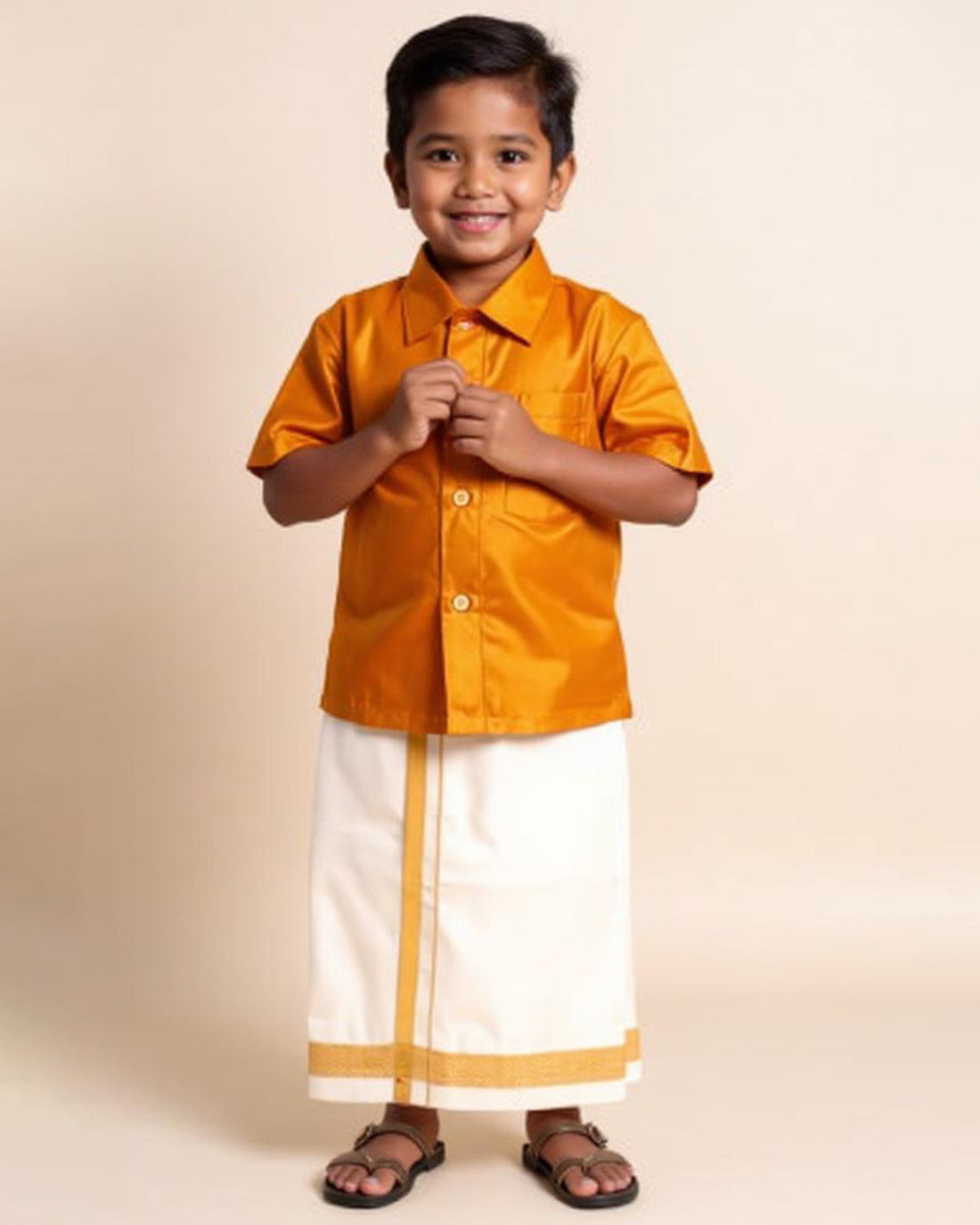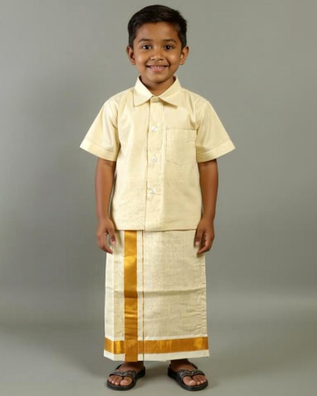 Traditional Kids Shirt and Dhoti Set - Gold