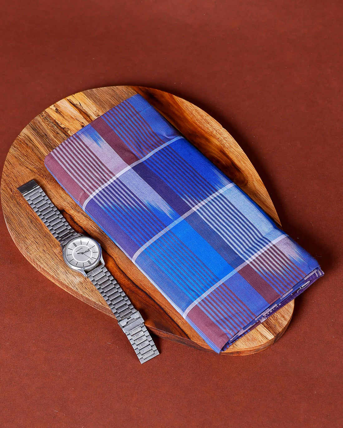 999 Brand Men's Premium Cotton Striped Lungi Stitched - Blue