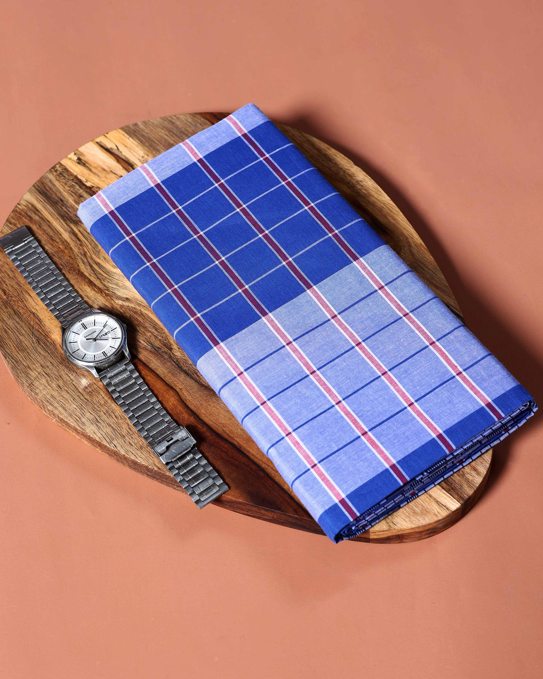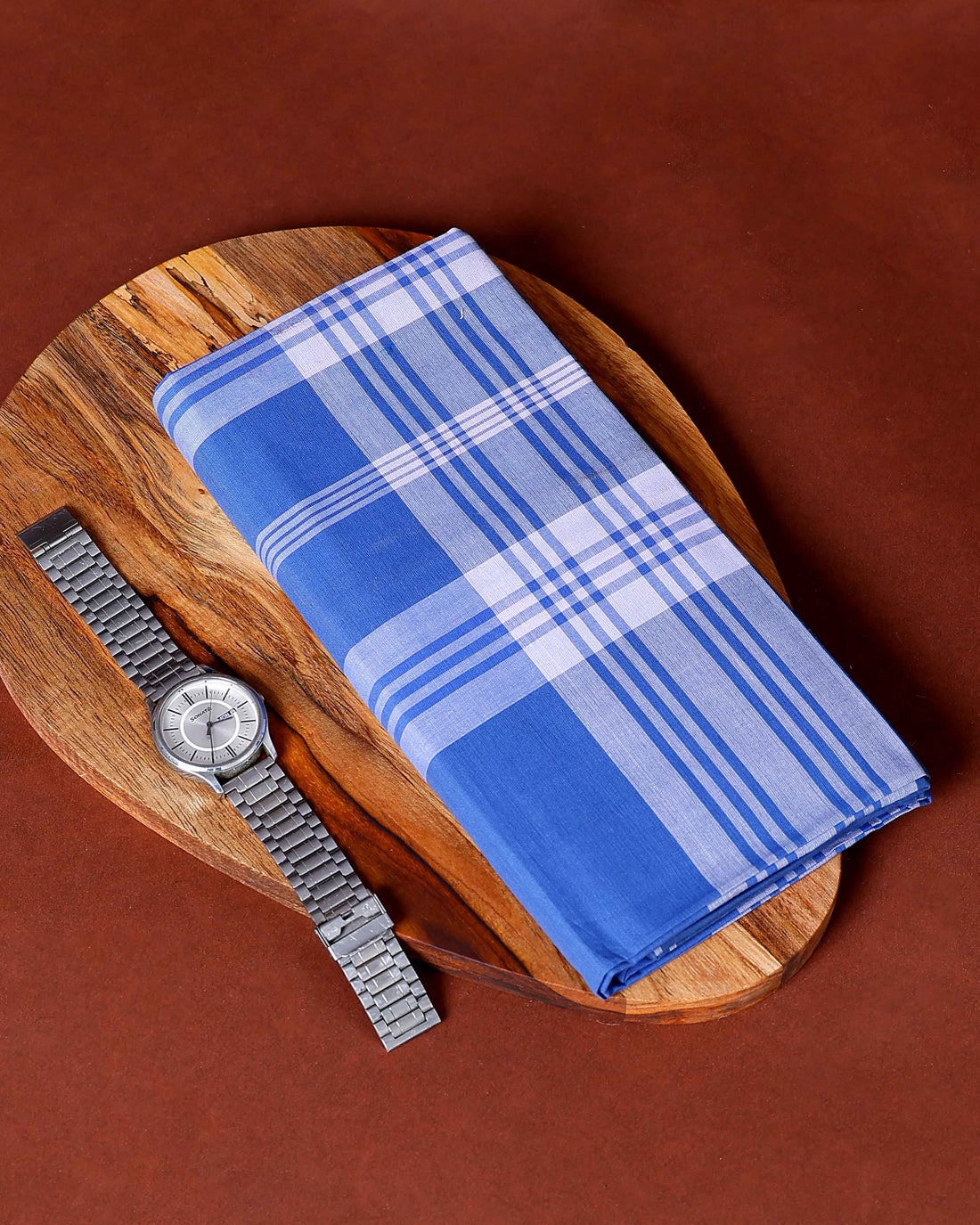 999 Brand Men's Premium Cotton Checked Lungi Stitched - Blue