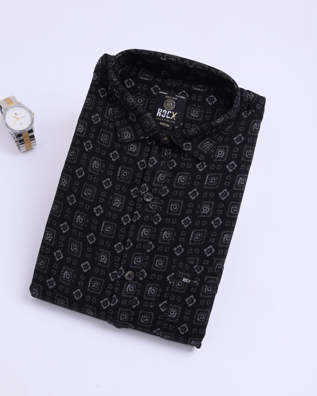 ROCX Men's Printed Casual Shirt with Geometric Pattern - Black