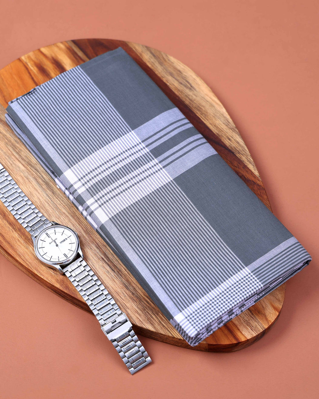 999 Brand Men's Premium Cotton Striped 2.10 Meter Stitched Lungi - Multi