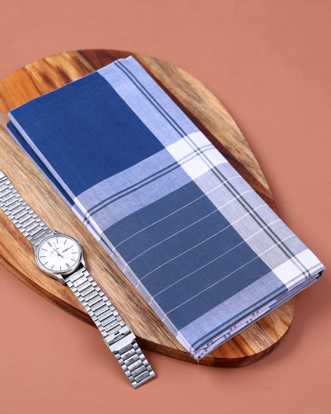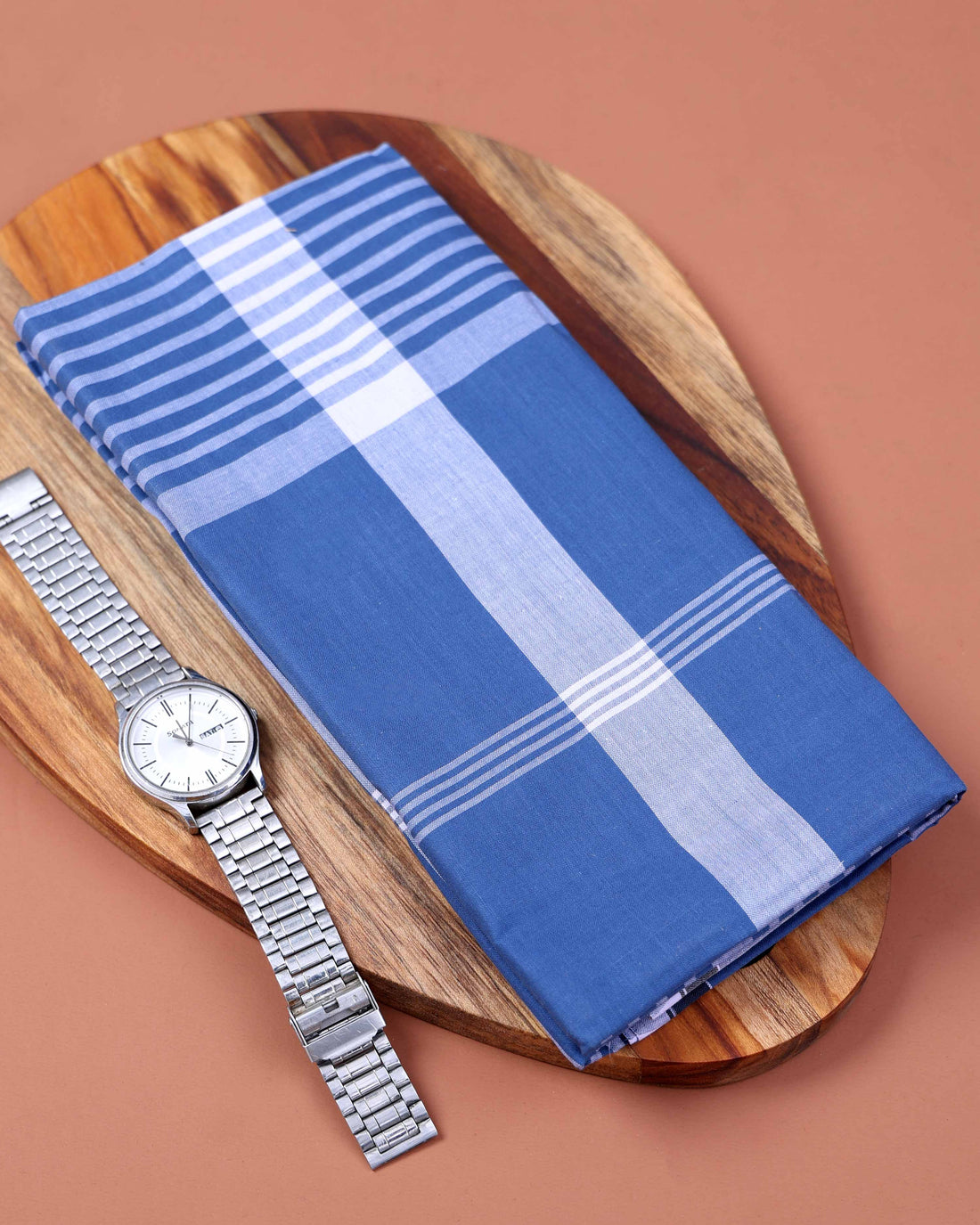 999 Brand Men's Premium Cotton Checked 2.10 Meter Stitched Lungi - Blue