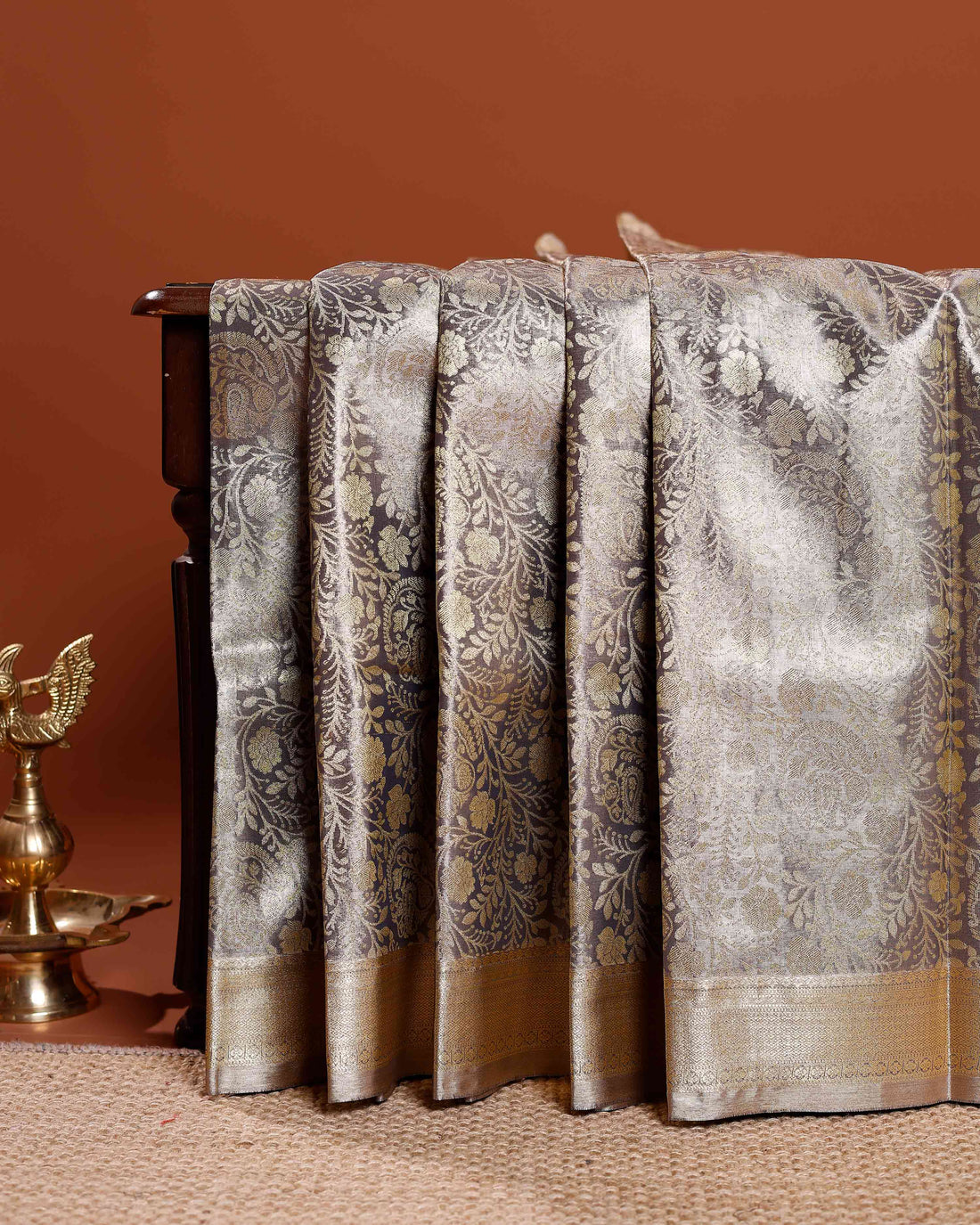 Classic Niranjana Silk Saree with Paisley Brocade Weaving and Elegant Floral Zari Border - Grey