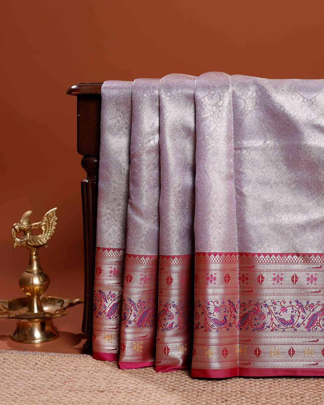 Elegant Niranjana Silk Saree with Intricate Zari Weaving and Traditional Border Motifs - Lavender