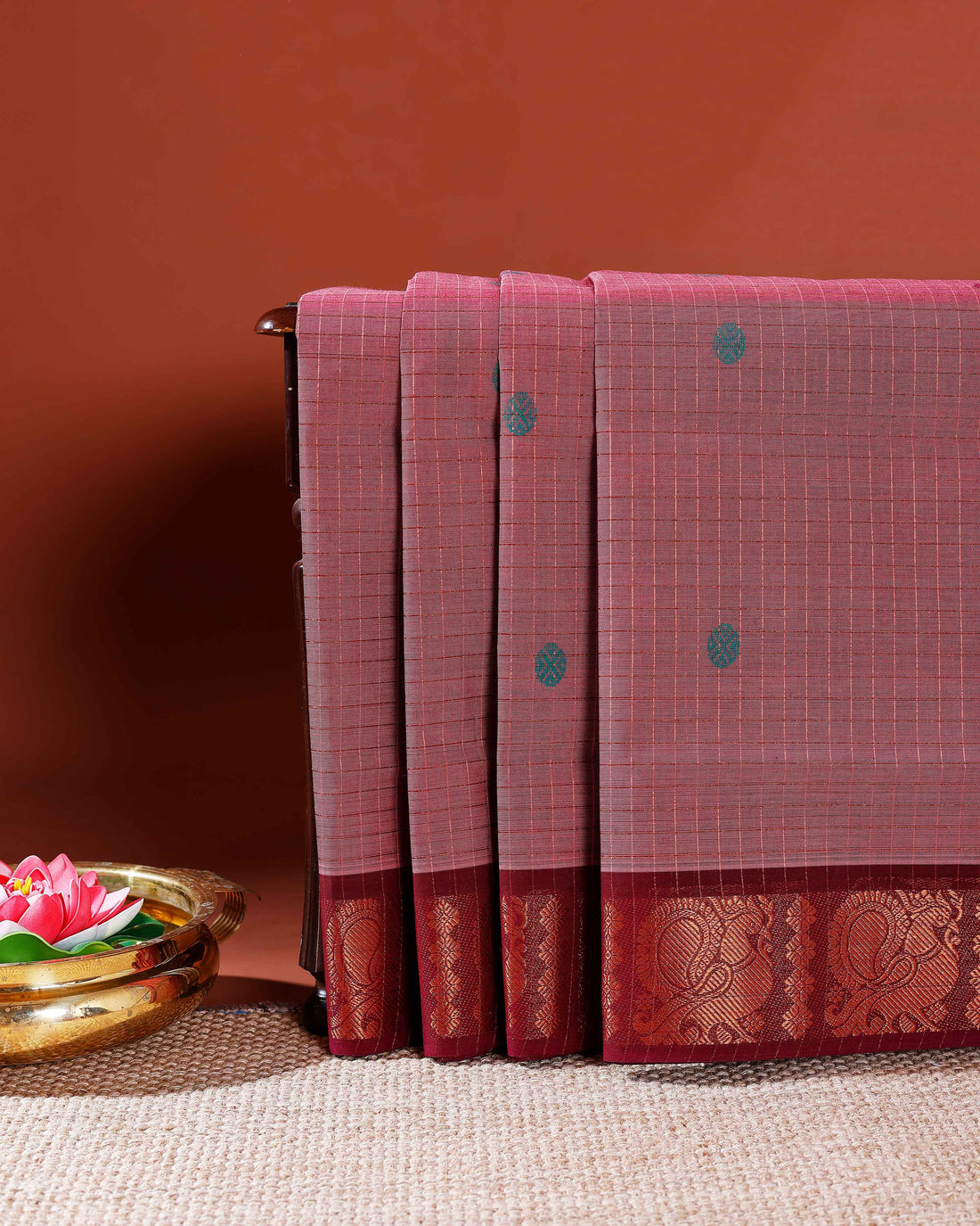 Handwoven Venkatagiri Cotton Saree with Traditional Zari Border and Intricate Motifs - Pink