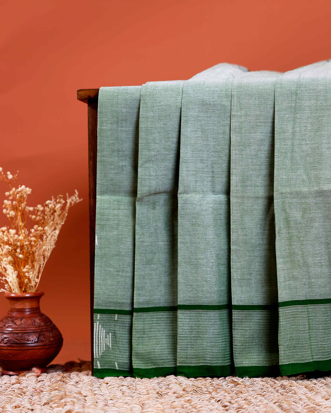 Handwoven Khadi Cotton Saree with Subtle Border Detail - Green