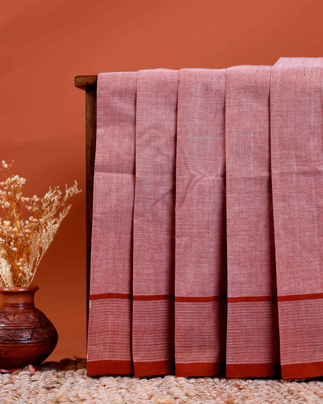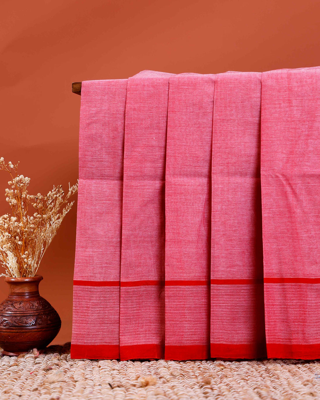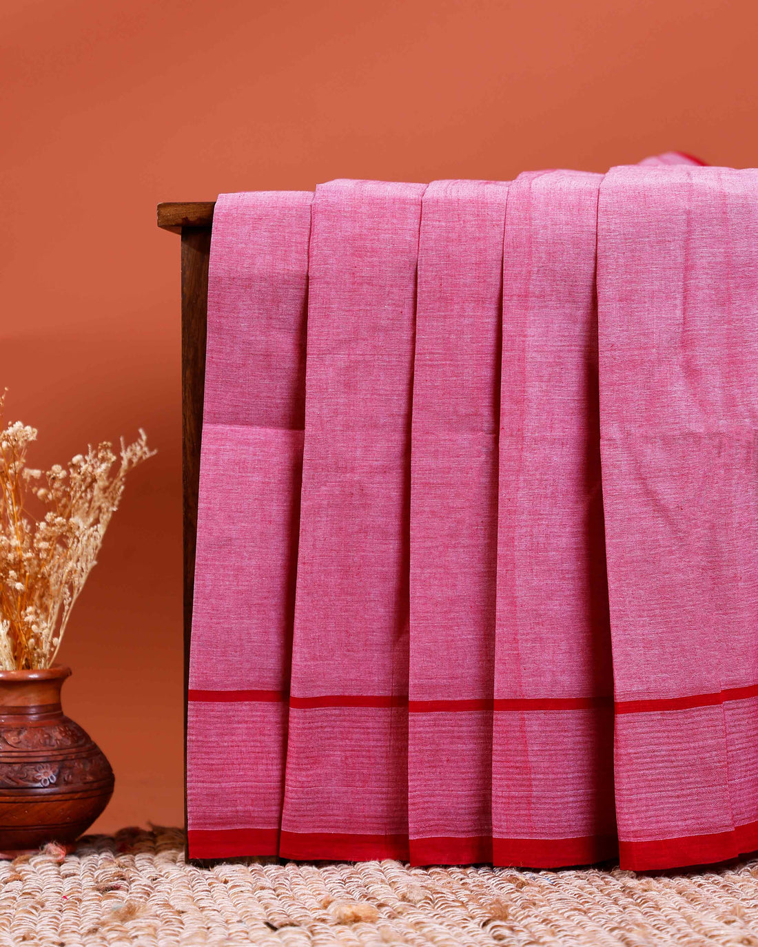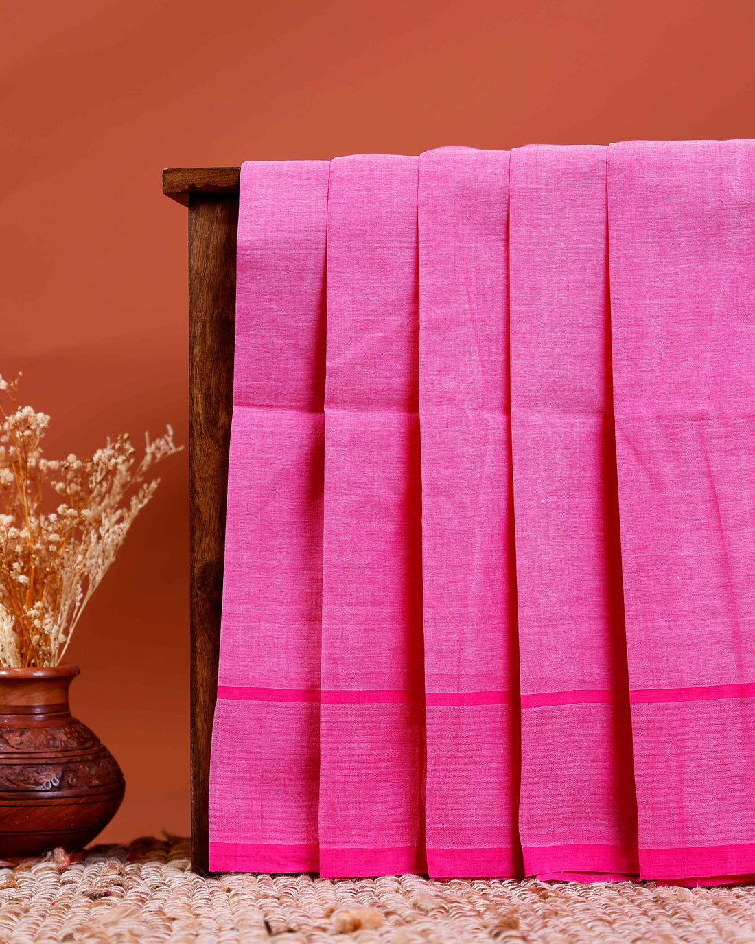 Handwoven Khadi Cotton Saree with Subtle Border Detail - Pink
