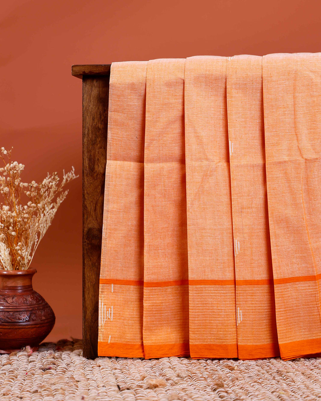 Handwoven Khadi Cotton Saree with Subtle Border Detail - Orange