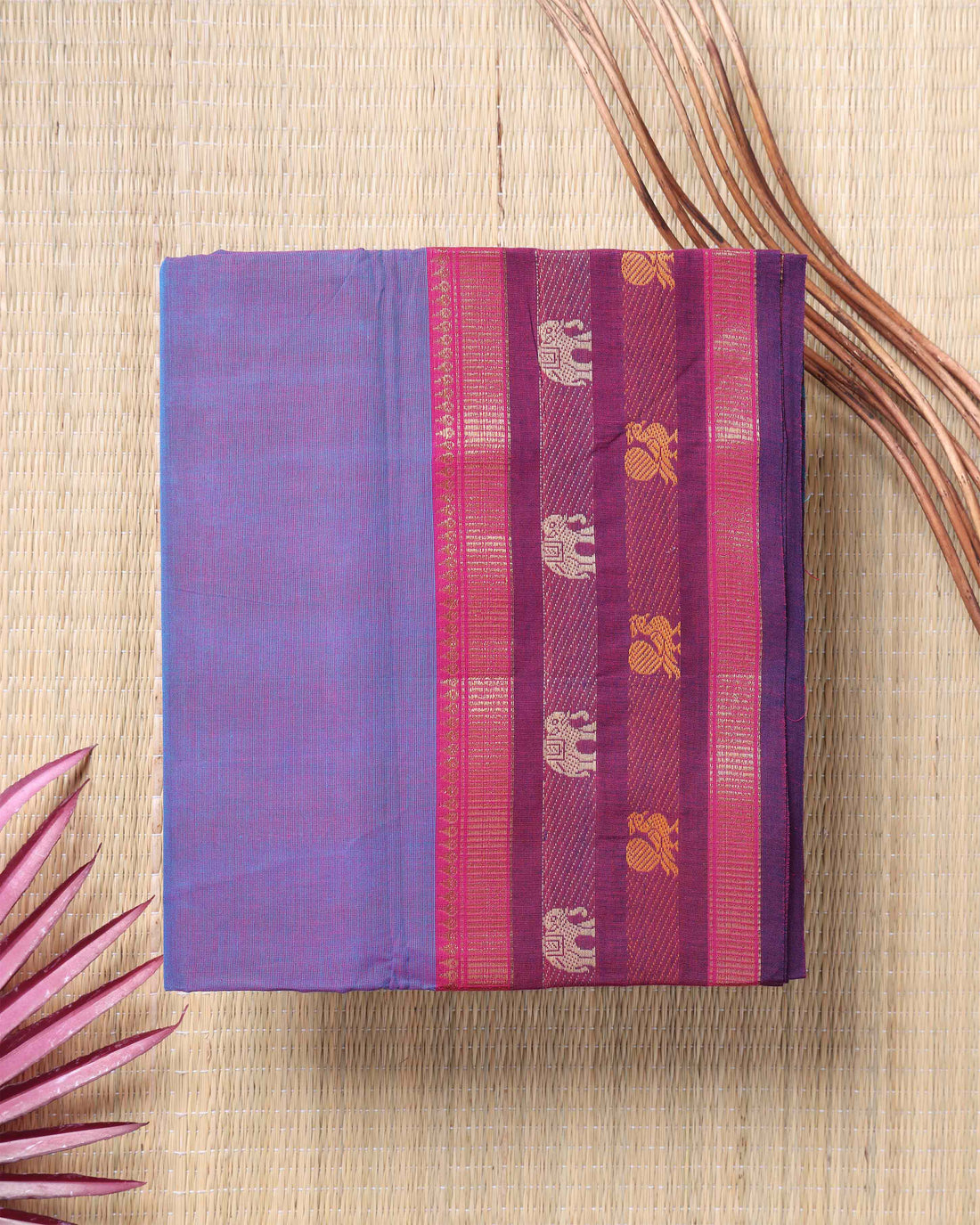 Elegant Handloom Cotton Saree with Traditional Weave - Lavender