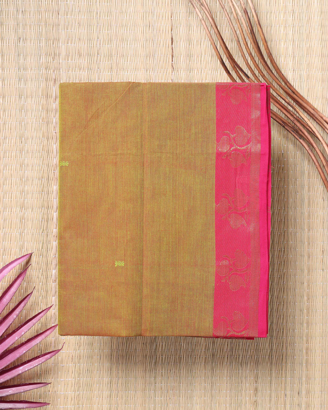Artisanal Handloom Cotton Saree with Zari Motifs - Brown