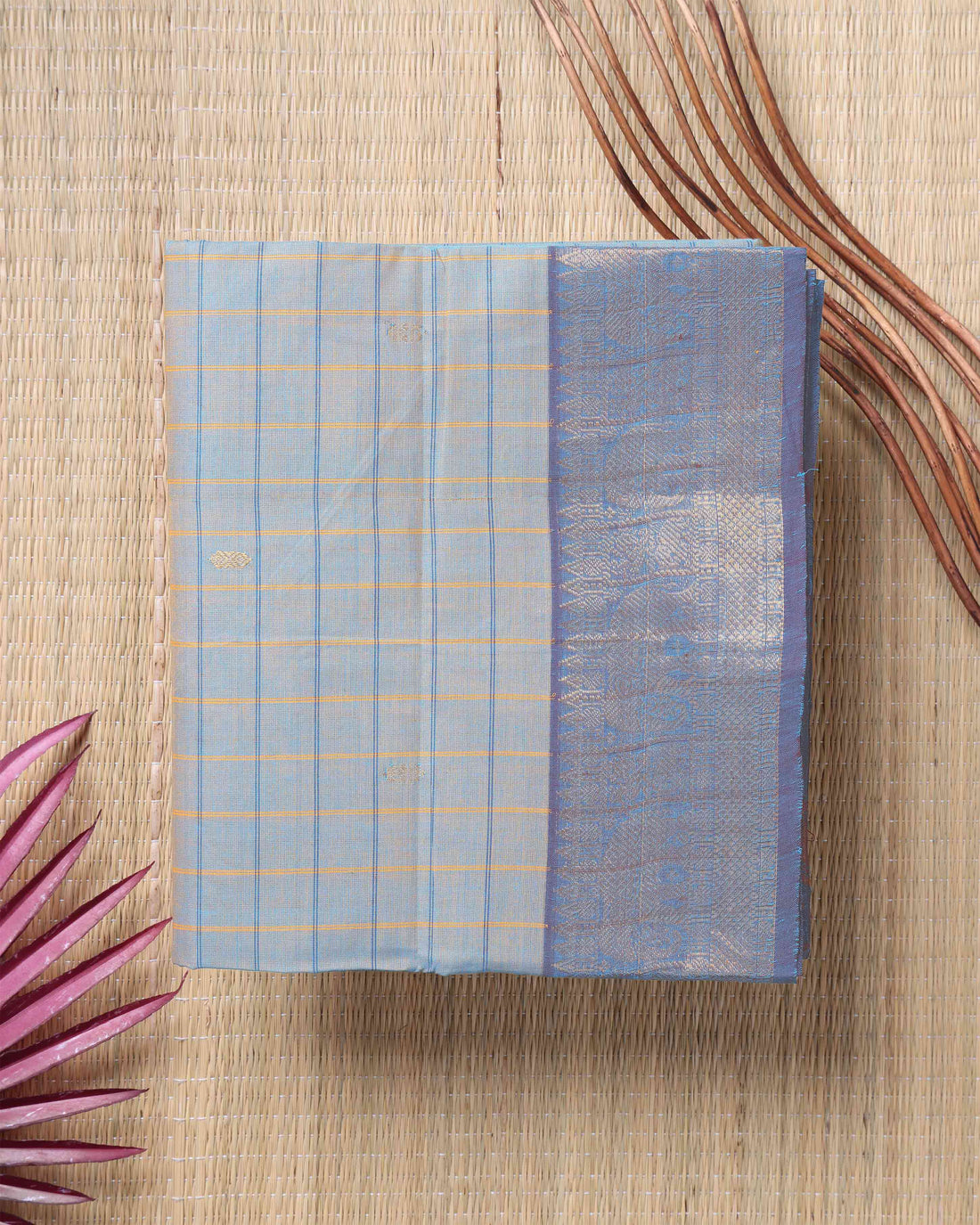 Handloom Cotton Saree with Checked Weave and Zari Border - Double Shade