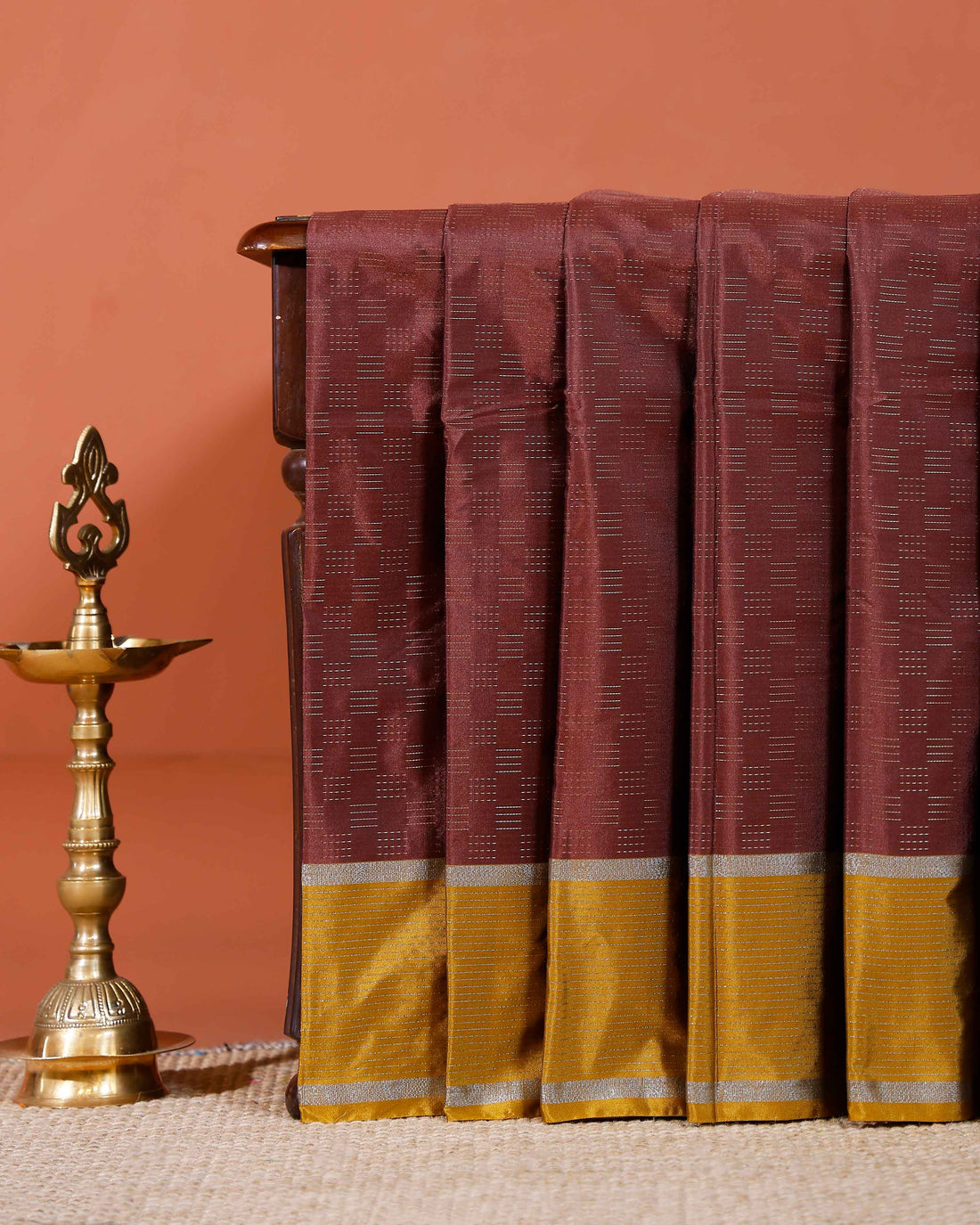 Exquisite Soft Silk Saree with Intricate Zari Motifs and Rich Border - Dark Brown