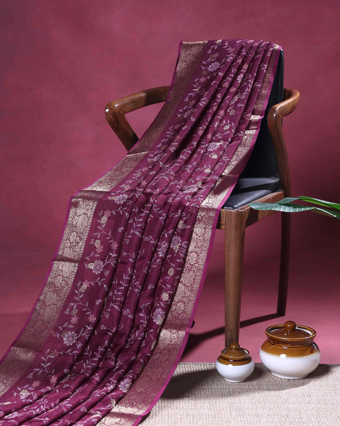Elegant Dola Silk Saree with Subtle All Over Floral Print and a Graceful Zari Border - Burgundy