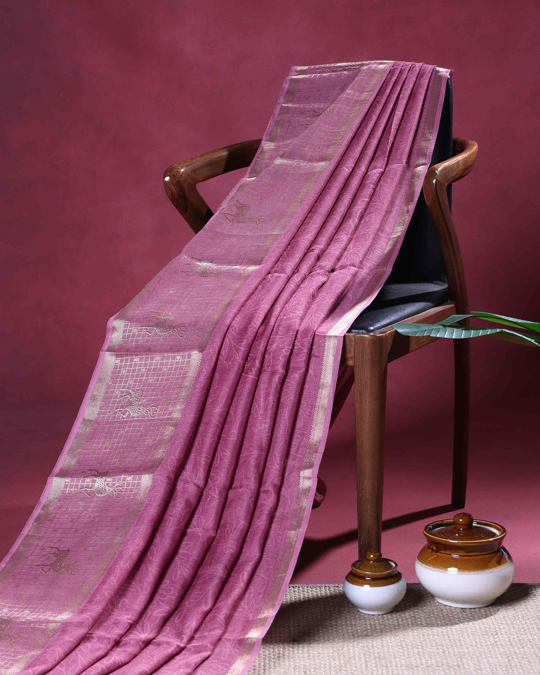 Elegant Dola Silk Saree with Subtle Woven Buttas Graceful Zari Border with Animal Motifs - Pink