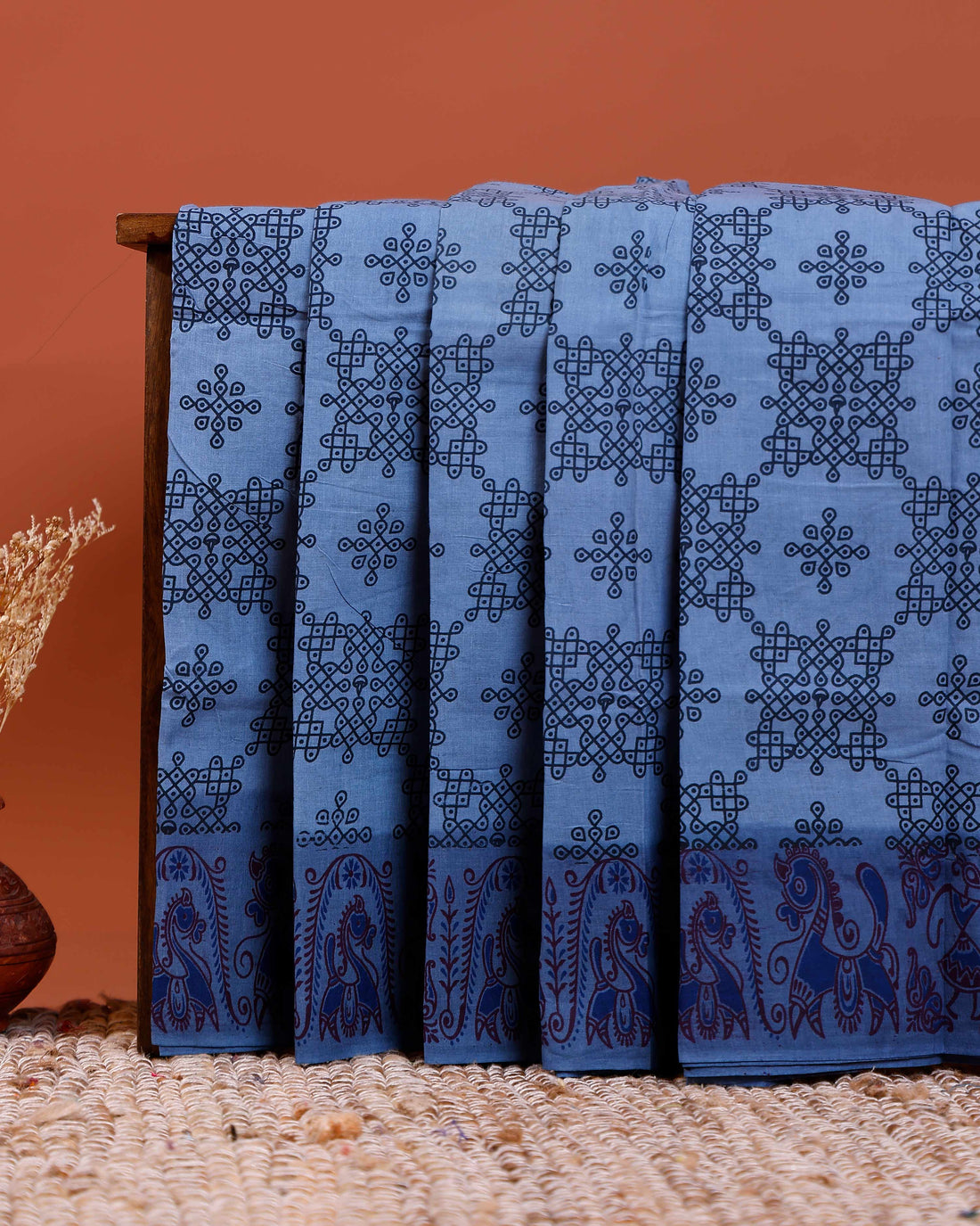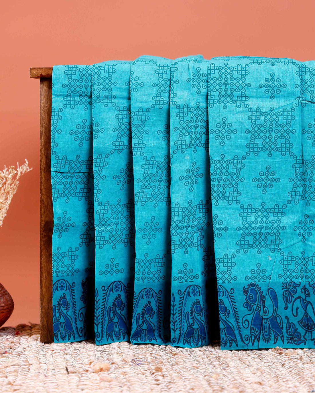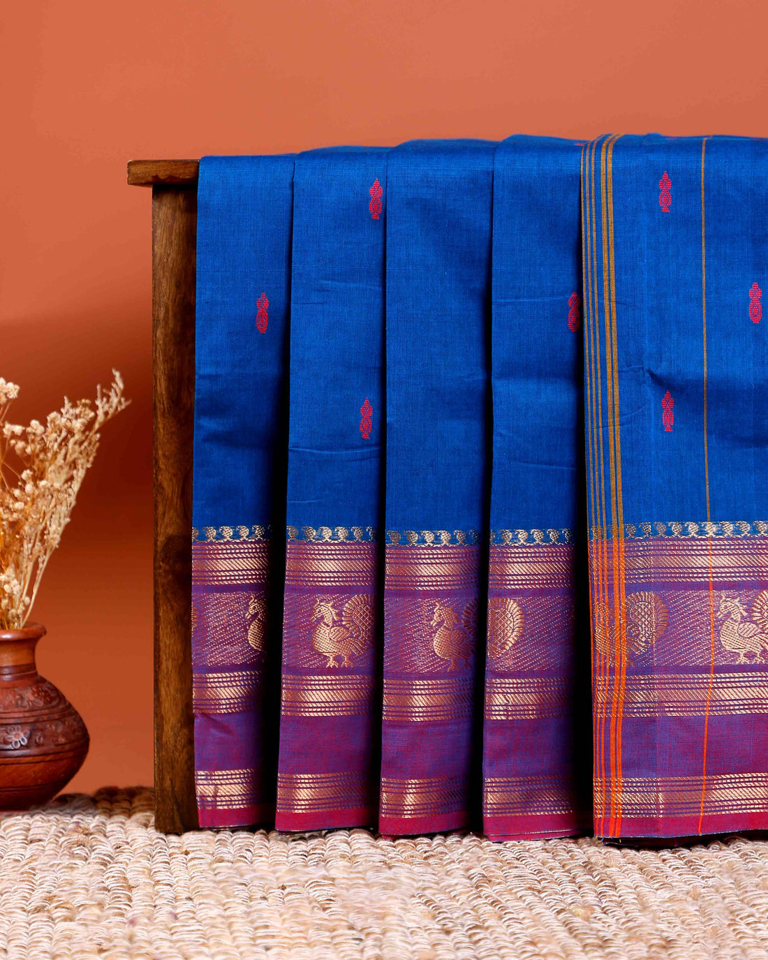 Handloom Chettinad Cotton Saree with Rich Zari Peacock Motif Border and Elegant Contrast Pallu - Blue