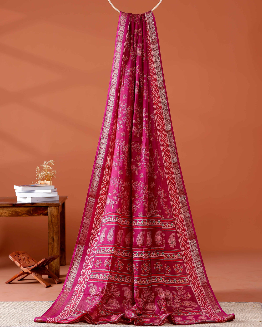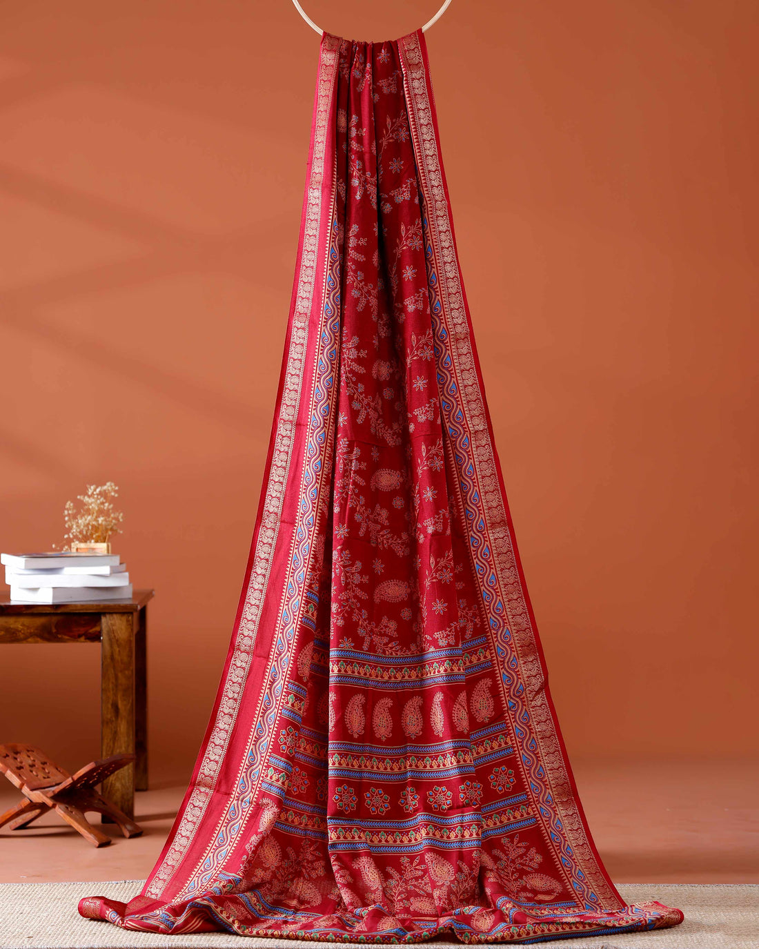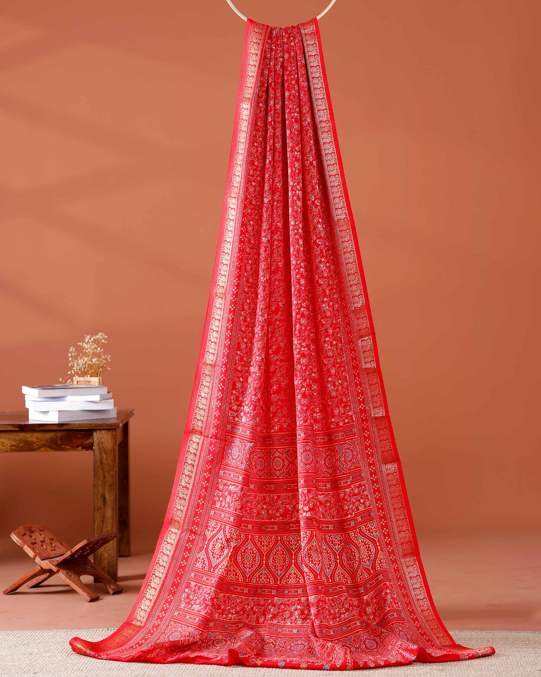 Elegance Traditional Floral Print Art Silk Saree in Red