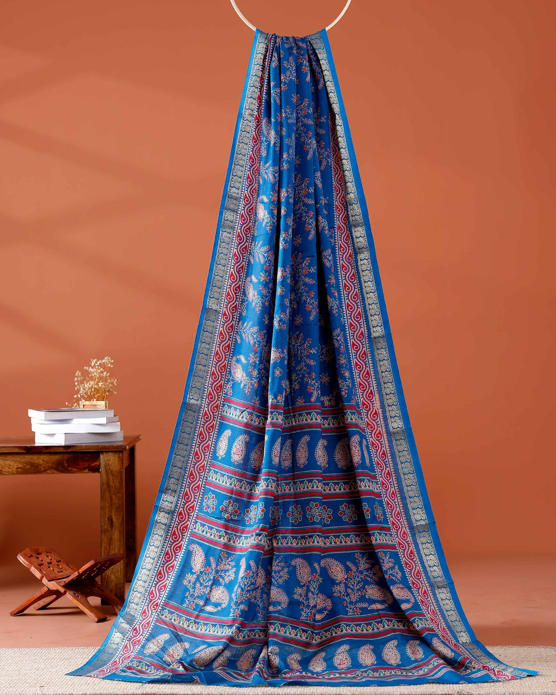 Elegance Traditional Floral Print Art Silk Saree in Blue