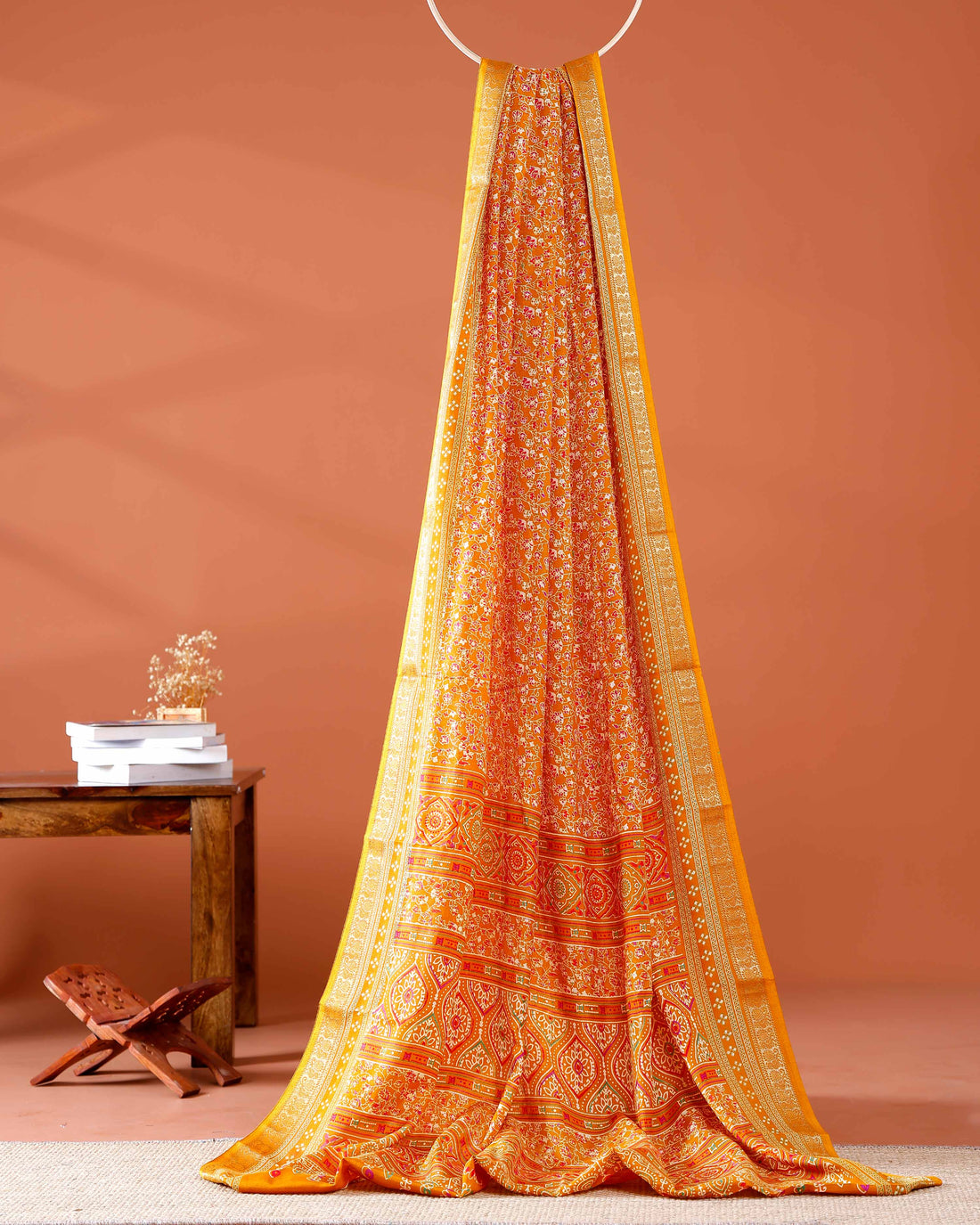 Elegant Ikkat Woven Semi Silk Saree with Traditional Zari Border & Pallu - Orange