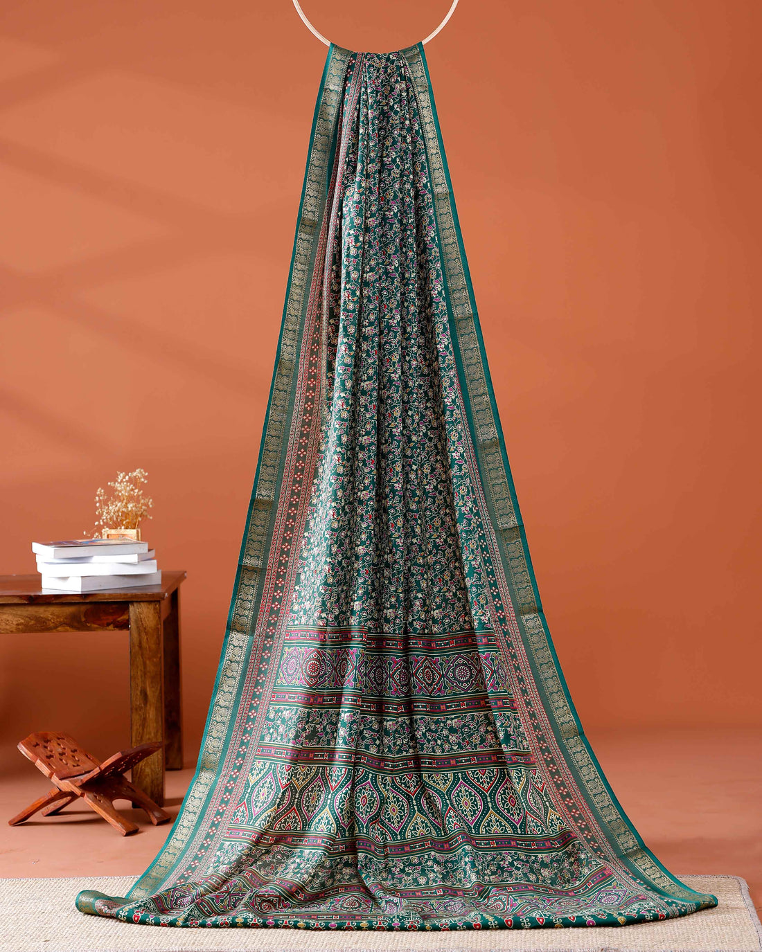 Elegance Traditional Floral Print Art Silk Saree in Green