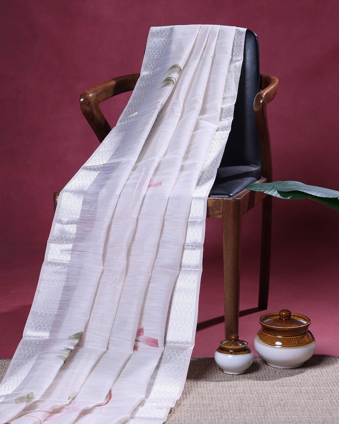 Elegant Linen Cotton Saree with Delicate Allover Buti Print and Traditional Ethnic Border - Off White