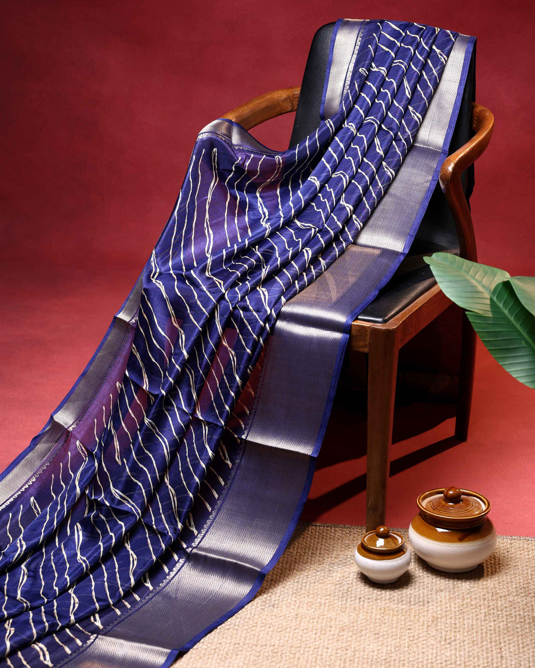 Elegant Dola Saree with Leheriya Inspired Print and Classic Zari Woven Border - Navy