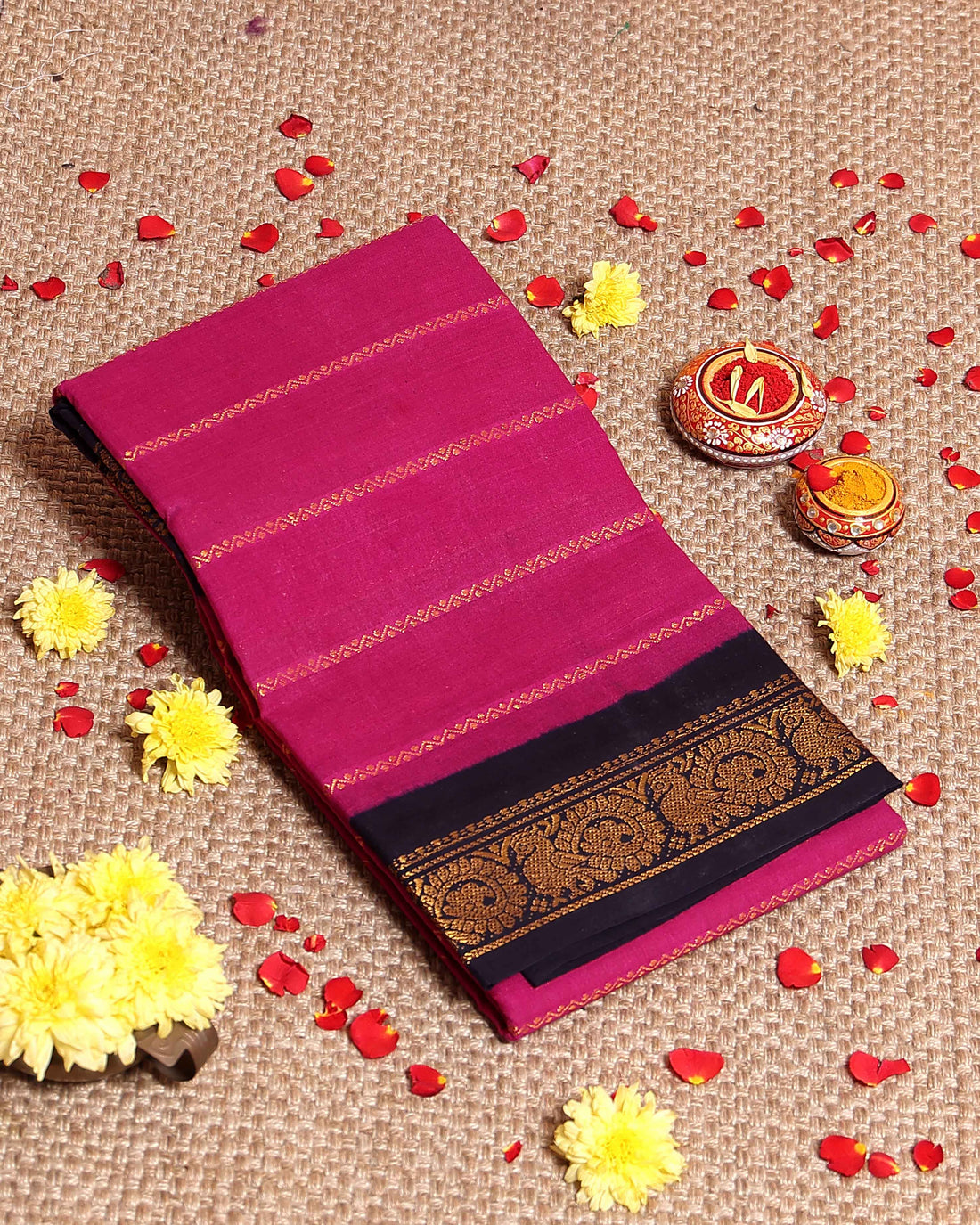 Elegant Sungudi Cotton Saree with Striped Body and Rich Zari Border - Magenta