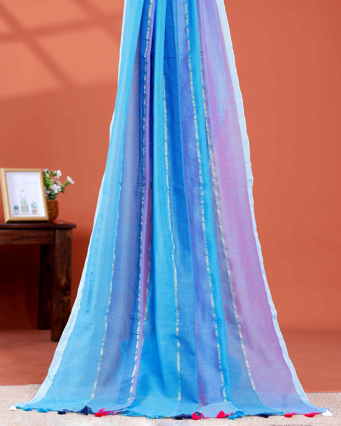 Handwoven Mul Mul Cotton Saree with Bold Striped Pattern and Tassel Detailing - Multi