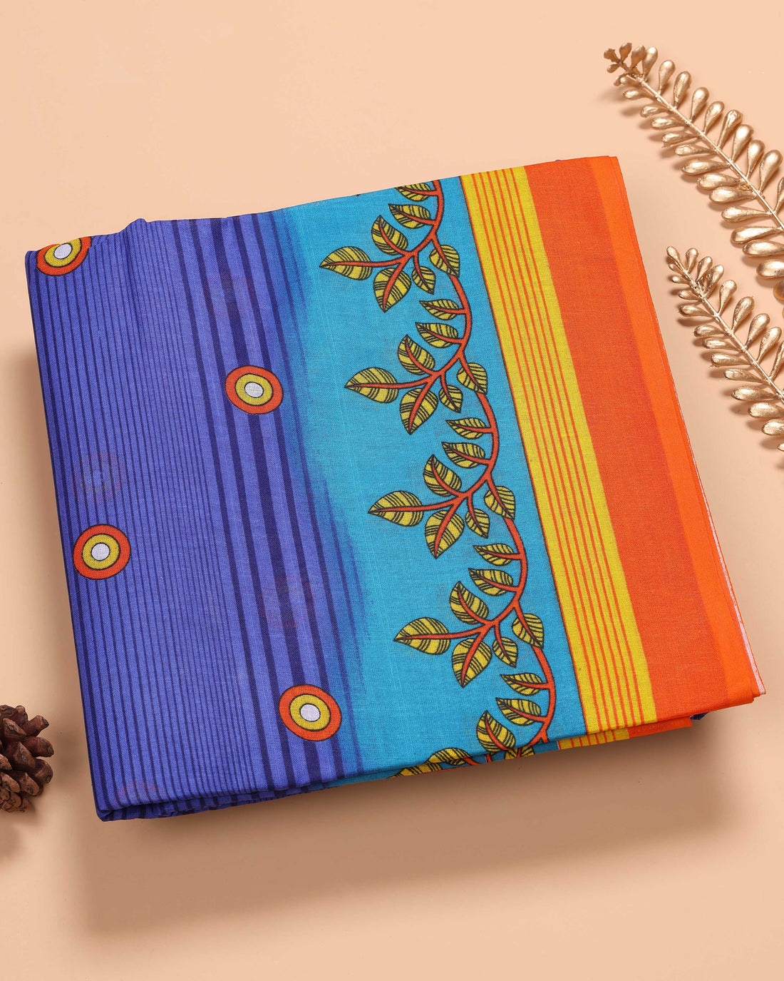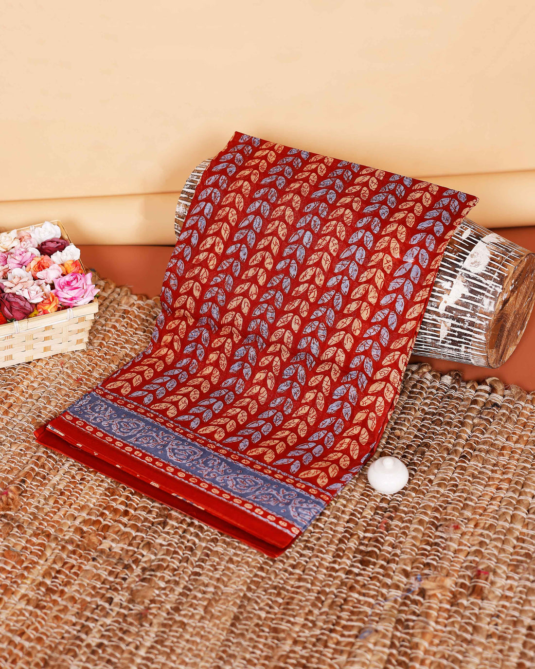 Graceful Voile Cotton Saree with Intricate Leaf Block Print and Elegant Border Design - Multi