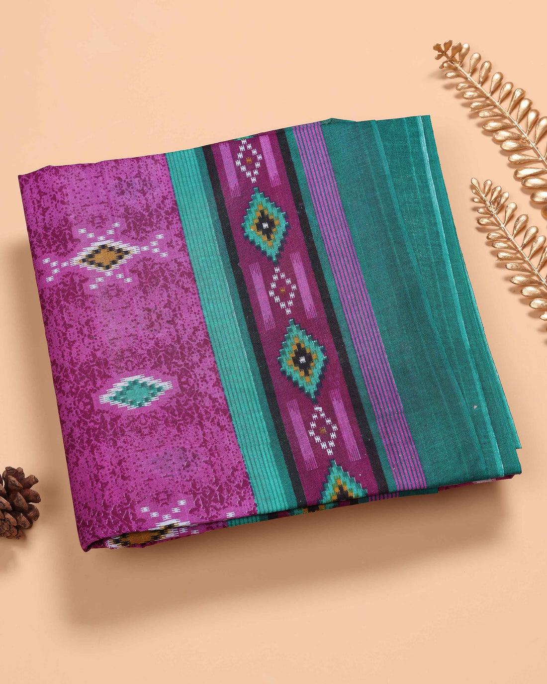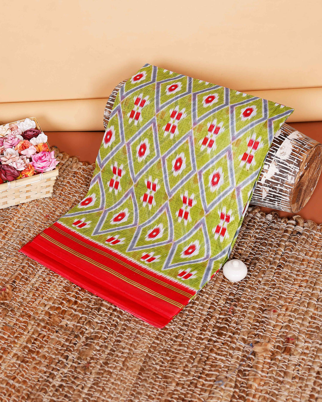 Graceful Voile Cotton Saree with Traditional Ikat Diamond and Stripe Pattern - Green