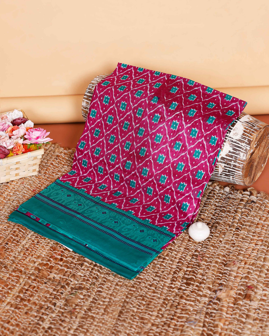 Graceful Ikat Patterned Voile Cotton Saree with Geometric Border - Pink