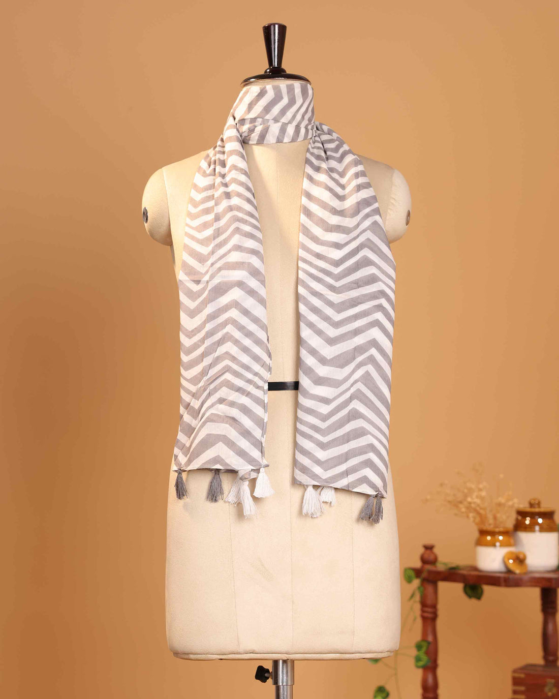 Elegant Women’s Zigzag Woven Dupatta with Handcrafted Tassels and Elegant Drape - Multi