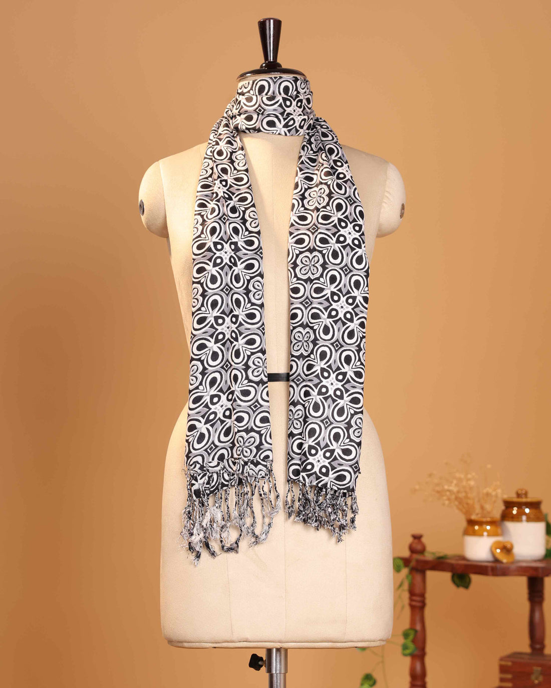 Elegant Women’s Chevron Inspired Printed Lightweight Stole and Tassel Detail - Black