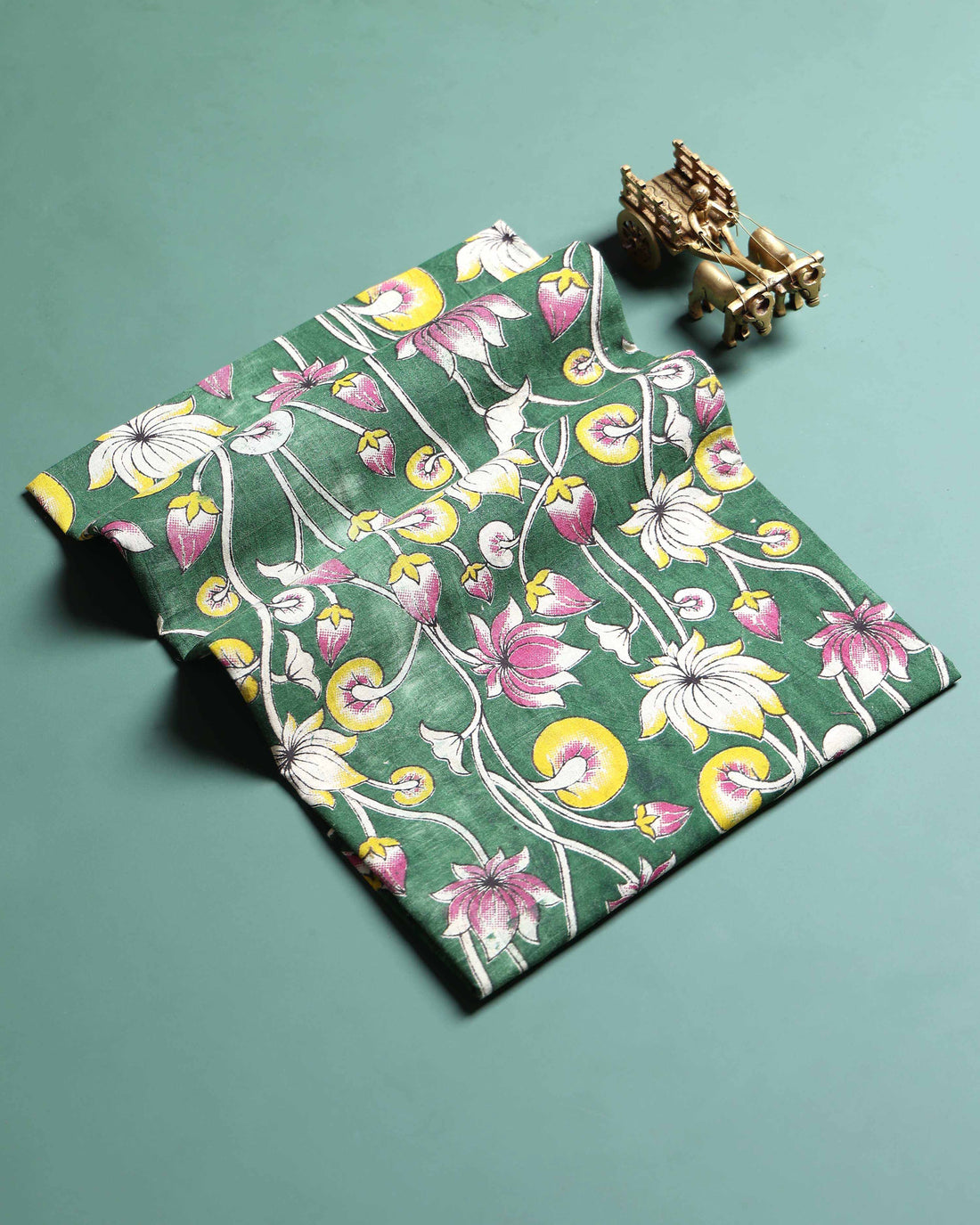Elegant Floral Handblock Printed Cotton 1 Meter Blouse Material with Intricate Traditional Motifs - Green