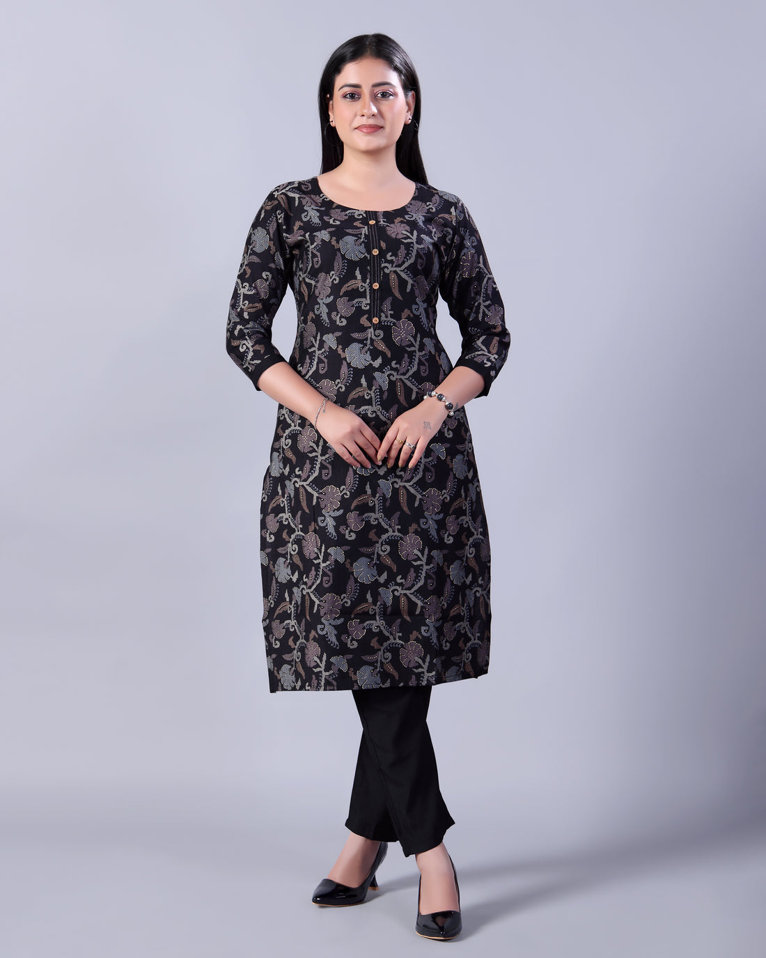 Stylish Floral Woven Design Kurta with Straight Palazzo - Black
