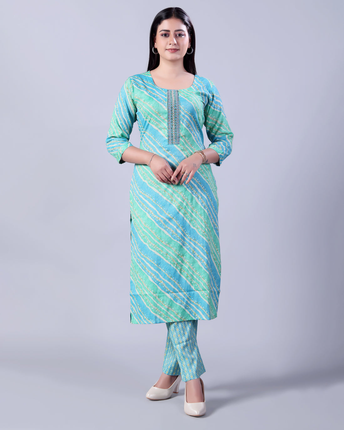 Women's Printed Kurta & Palazzo Set - Teal Blue