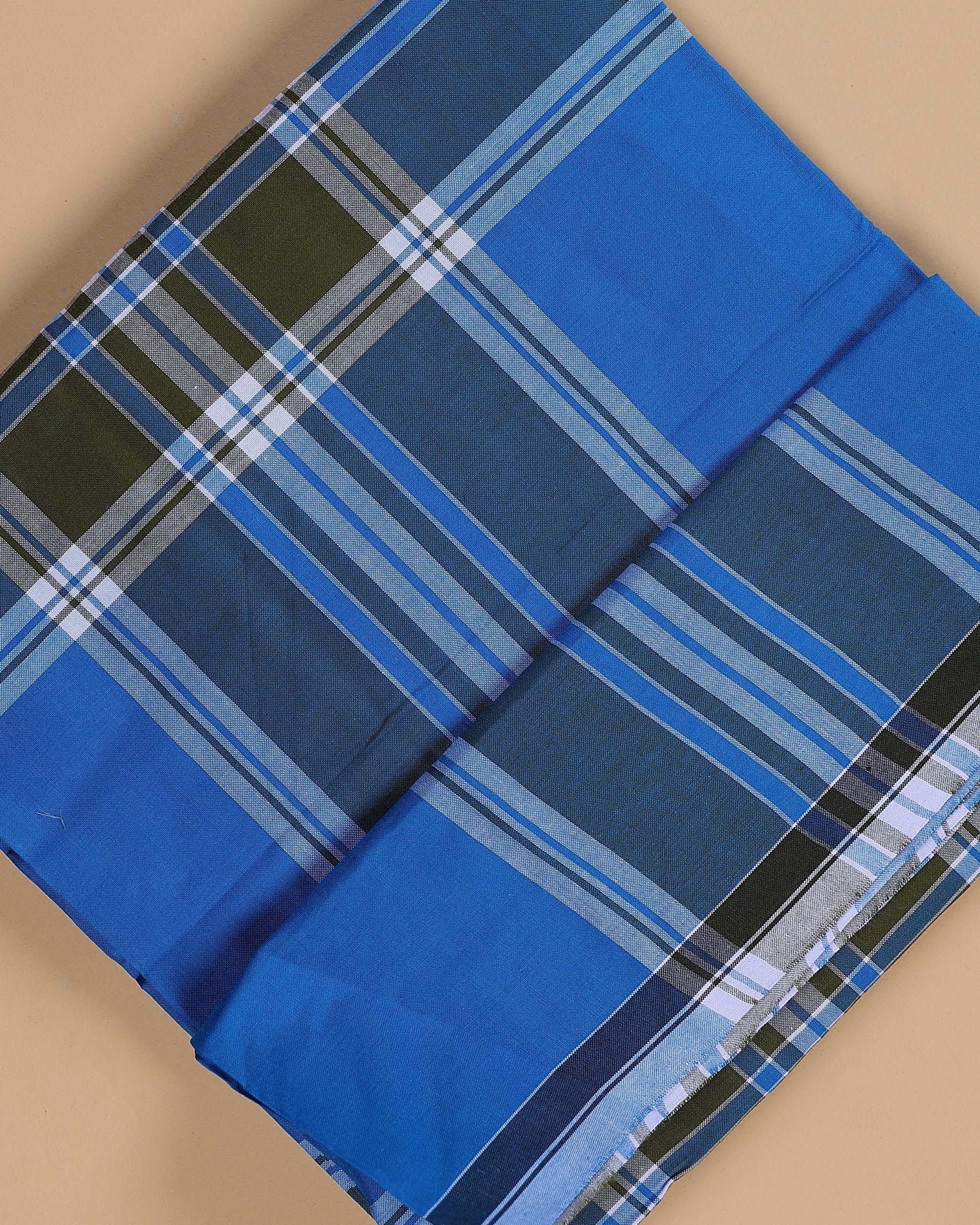 999 Brand Men's Premium Cotton Striped Lungi Stitched - Blue