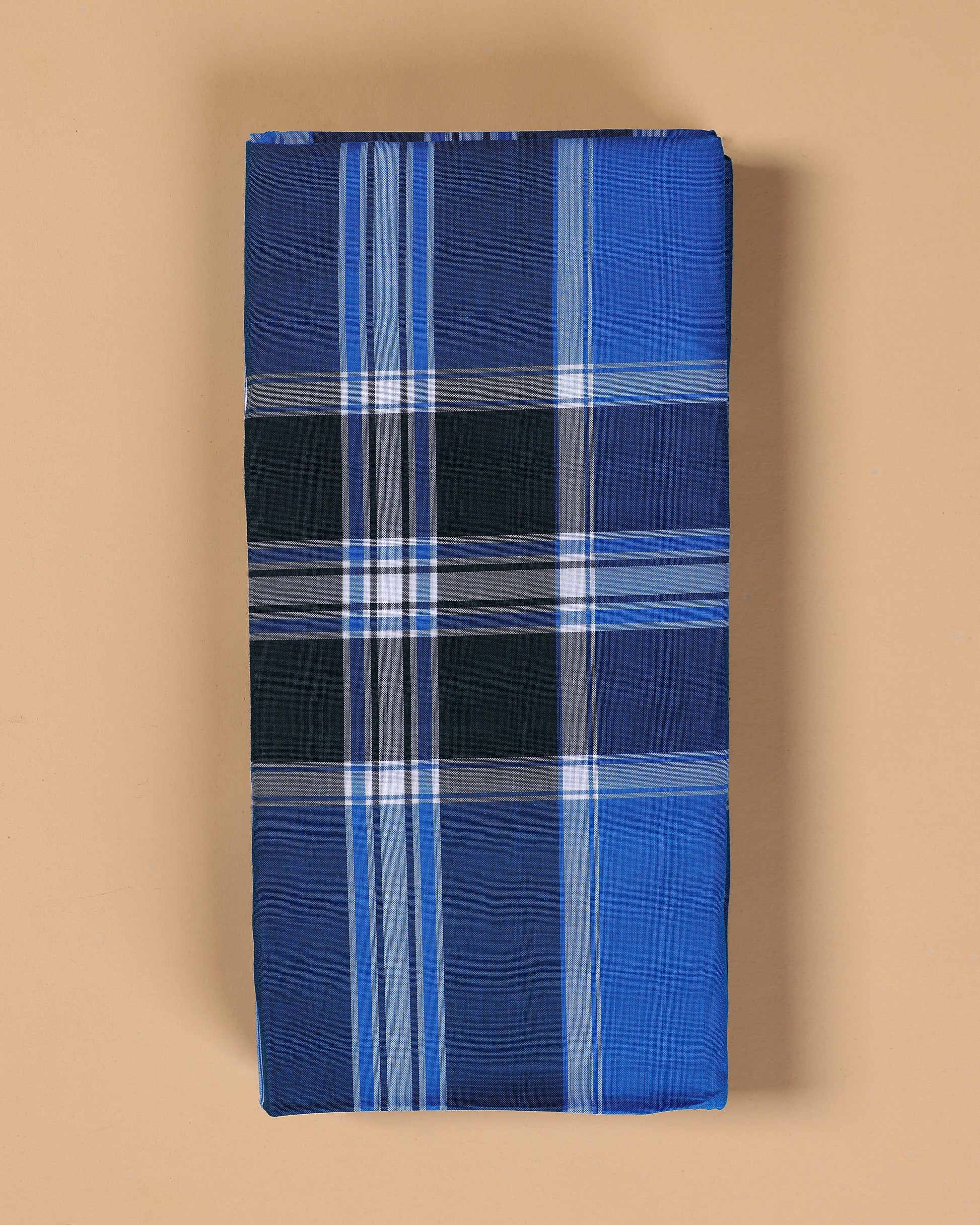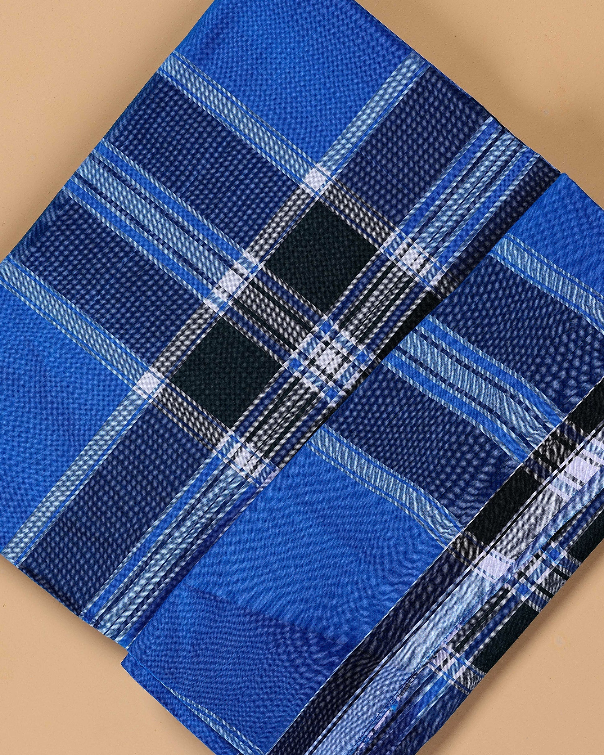 999 Brand Men's Premium Cotton Striped Lungi Stitched - Blue