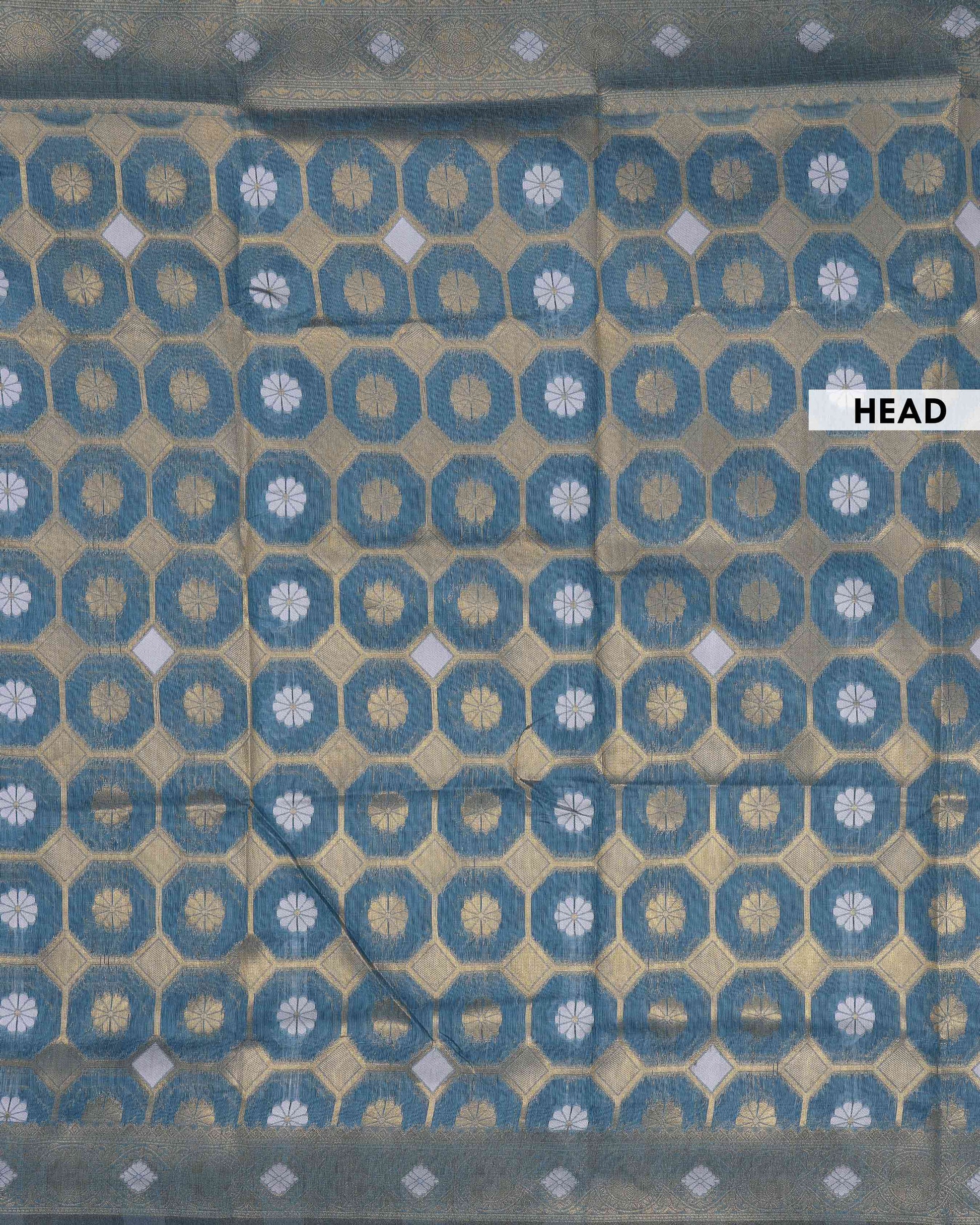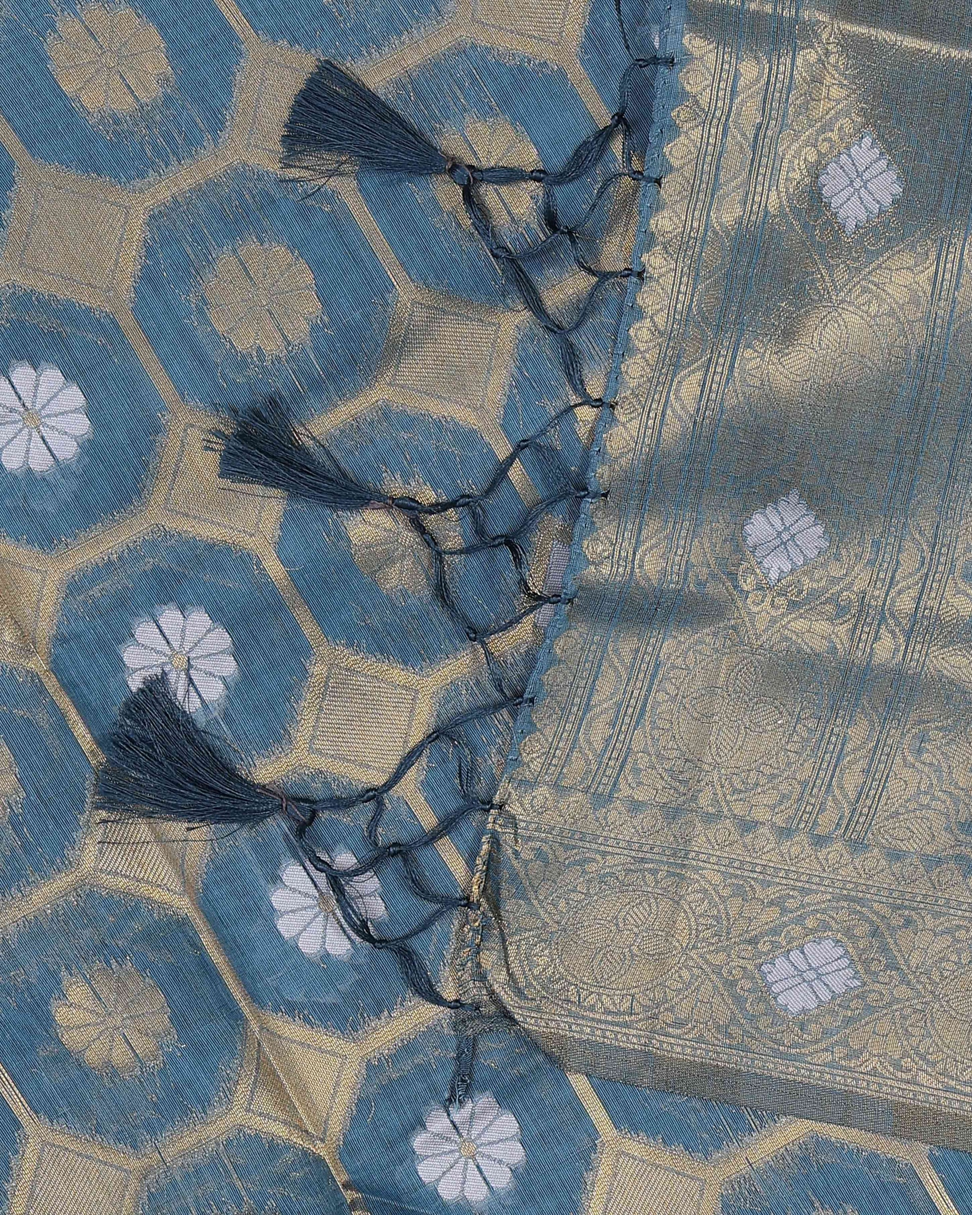 Adorned With Intricately Woven Floral Motifs Within The Geometric Shape Art Silk Saree - Blue