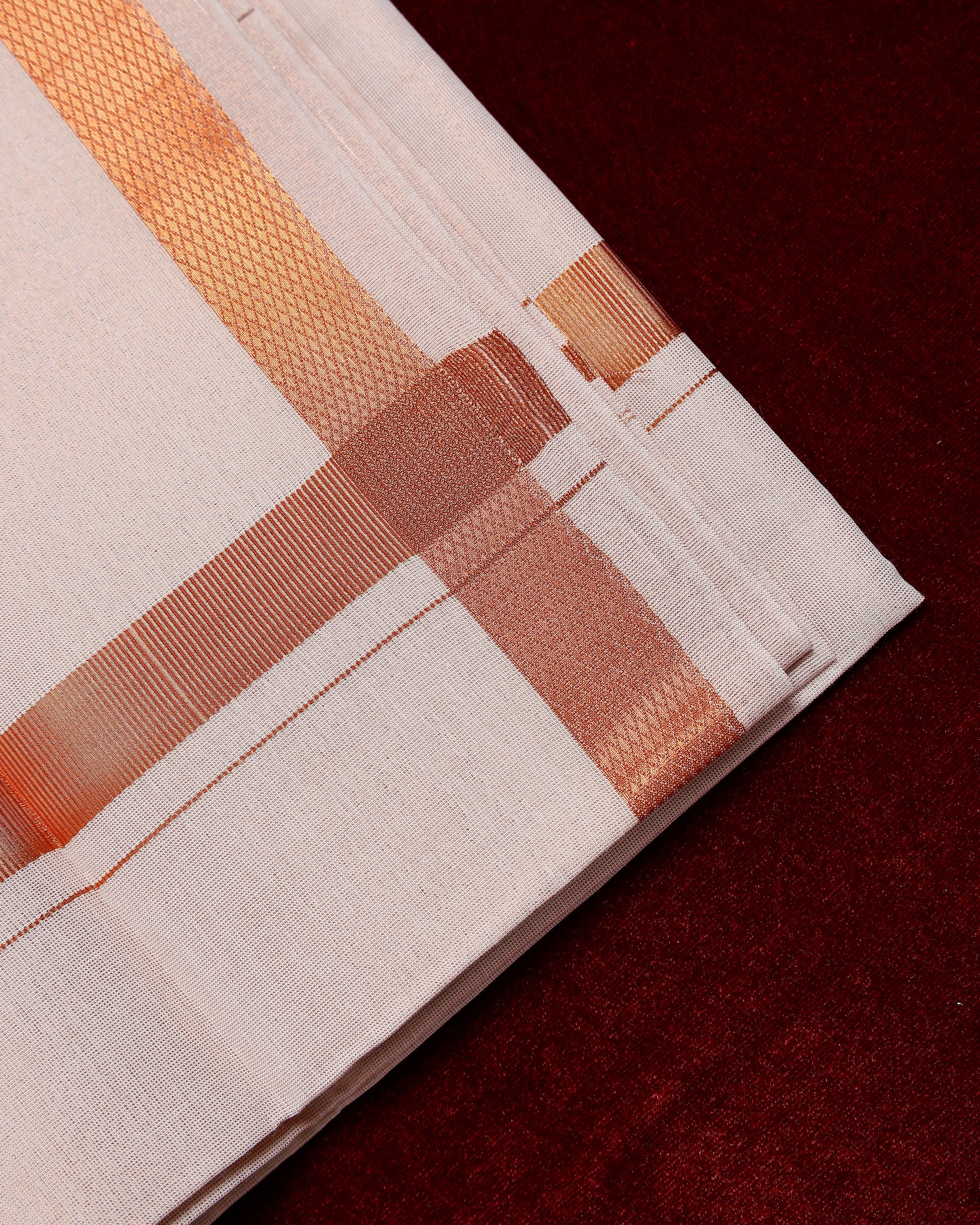 Men's Alaya Cotton Dhoti with Elegant Copper Zari Border - Copper