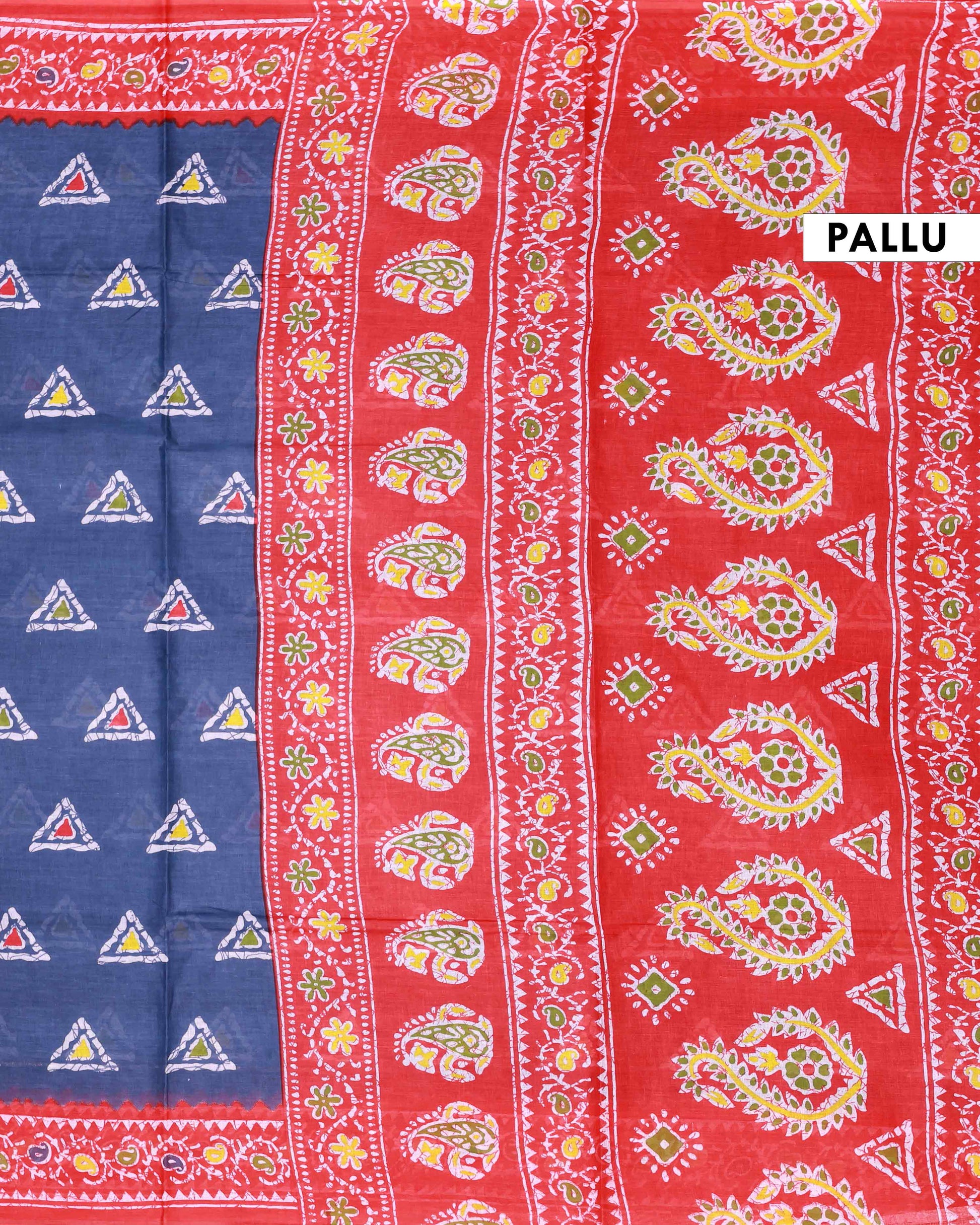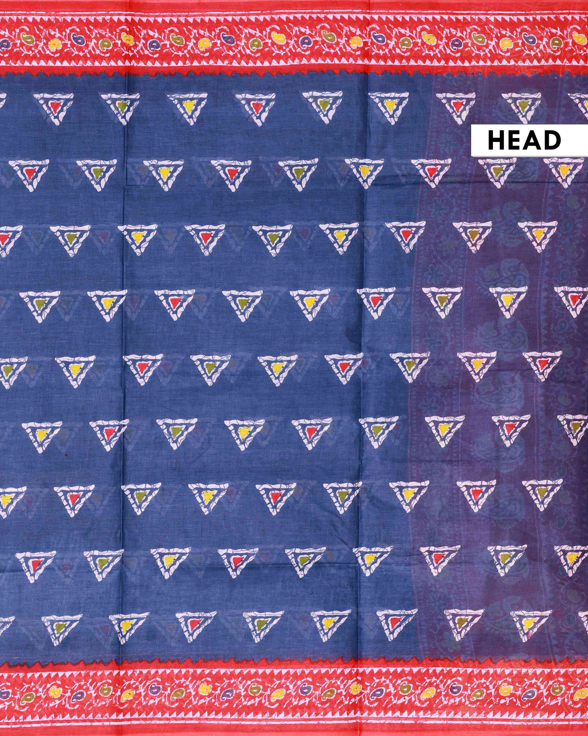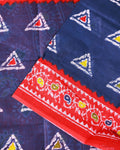 - Soft voile cotton saree adorned with hand block inspired geometric triangle motifs and a contrasting ethnic border