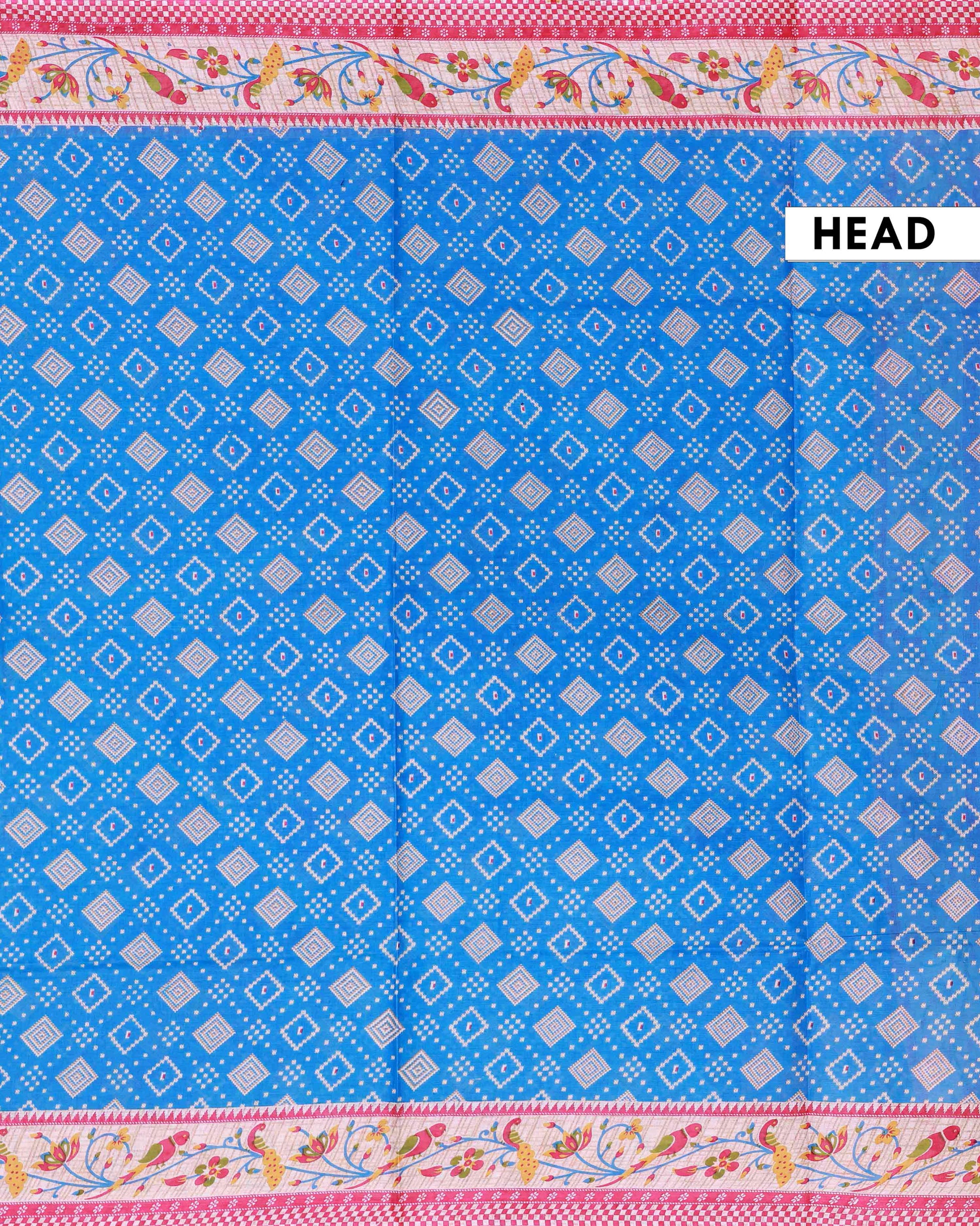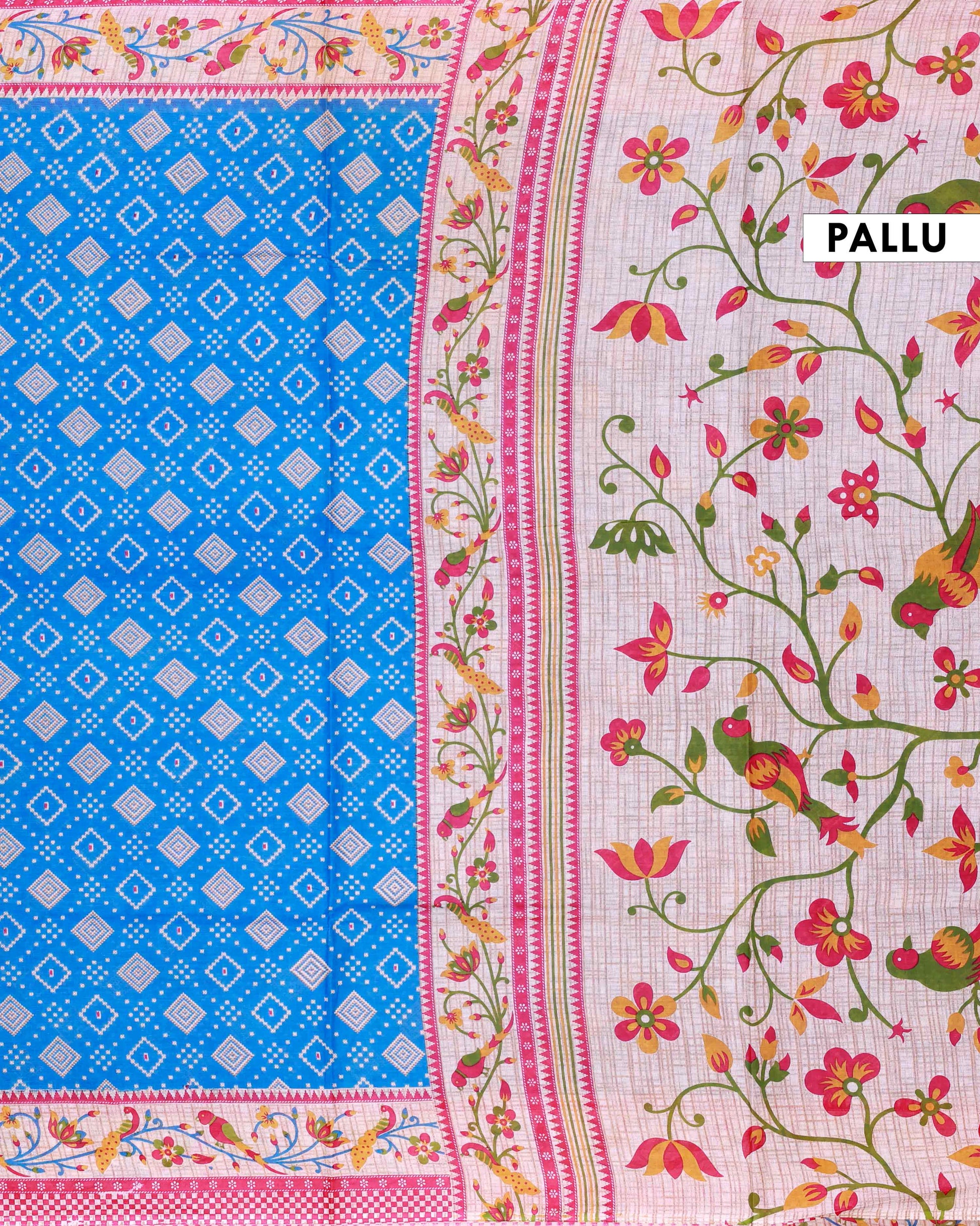 All-Over Floral Printed Voile Saree with Intricate Contrast Border – Blue