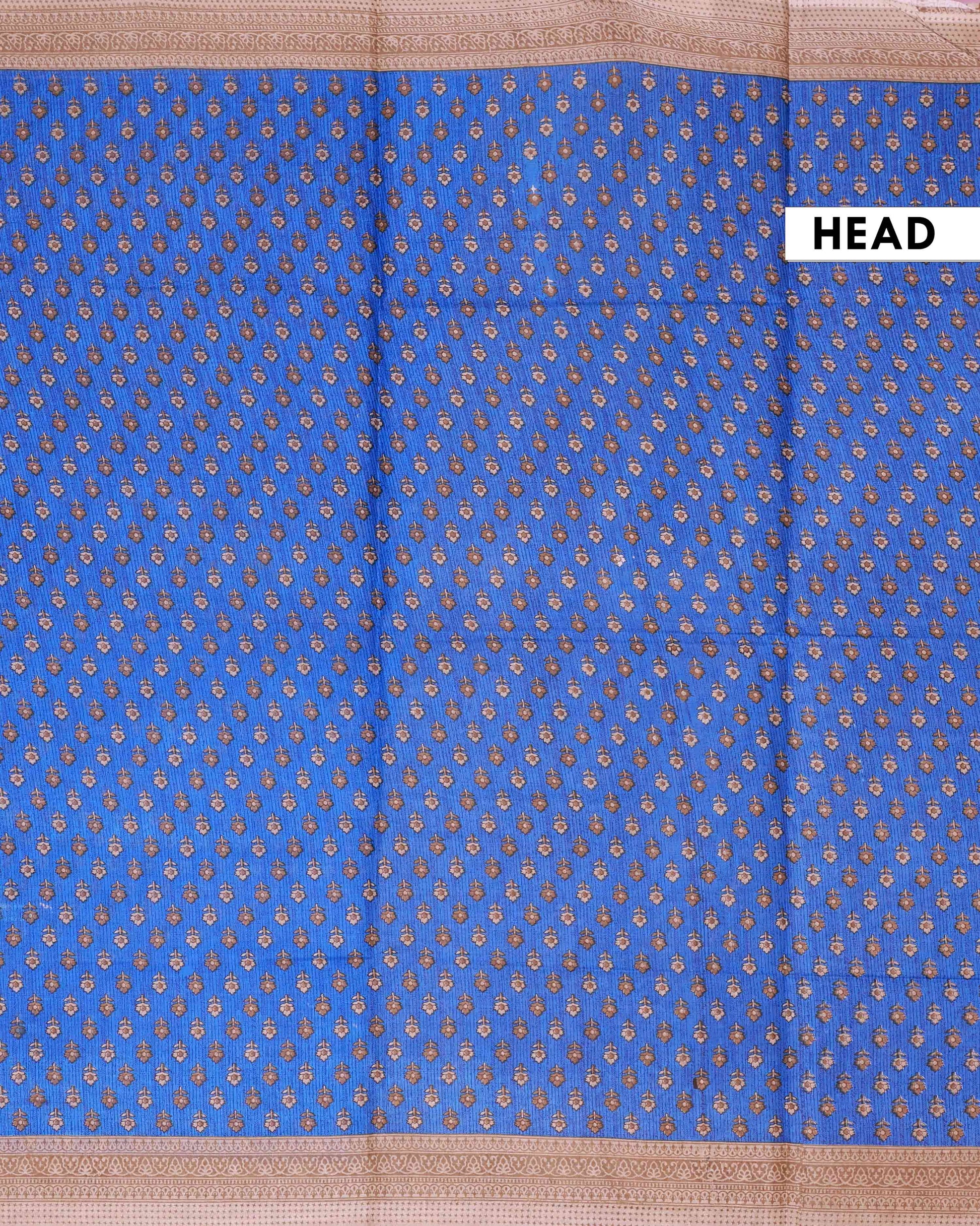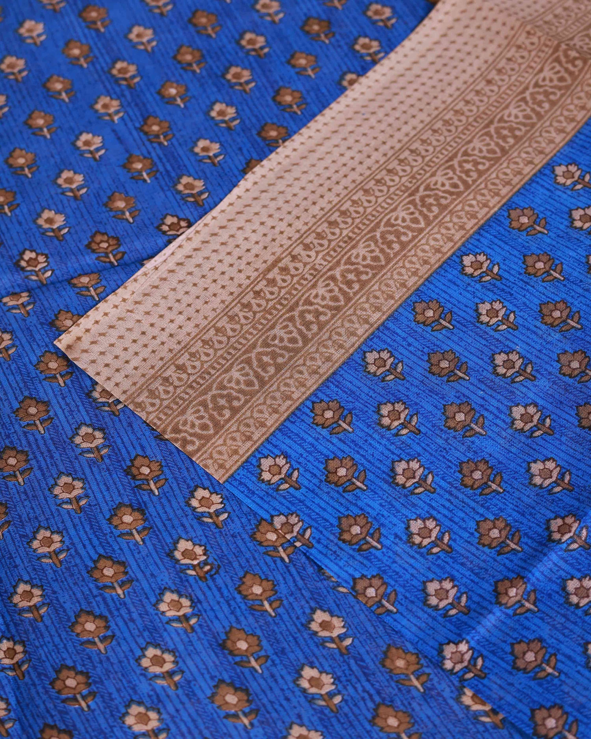 All-Over Floral Printed Voile Saree with Intricate Contrast Border – Blue