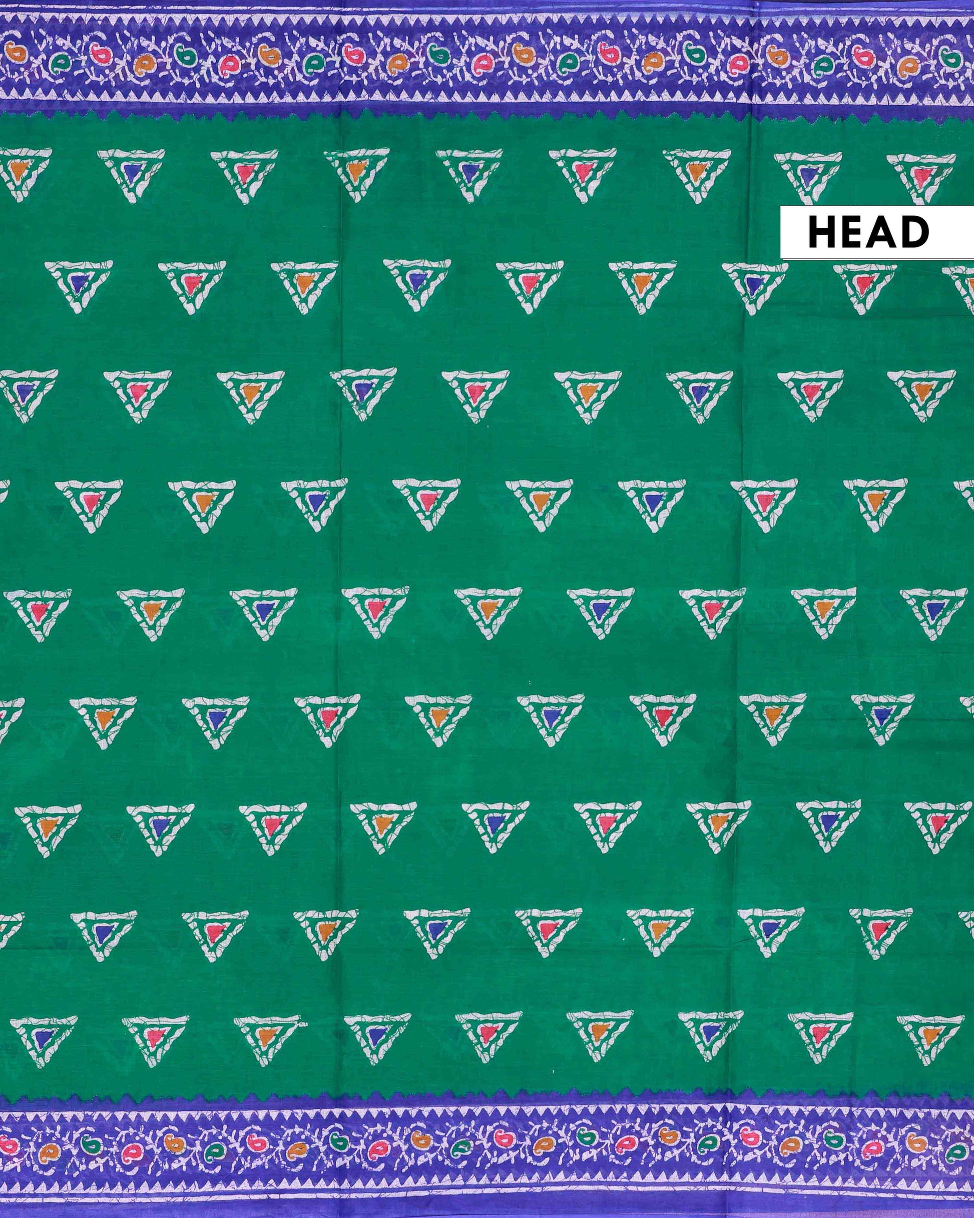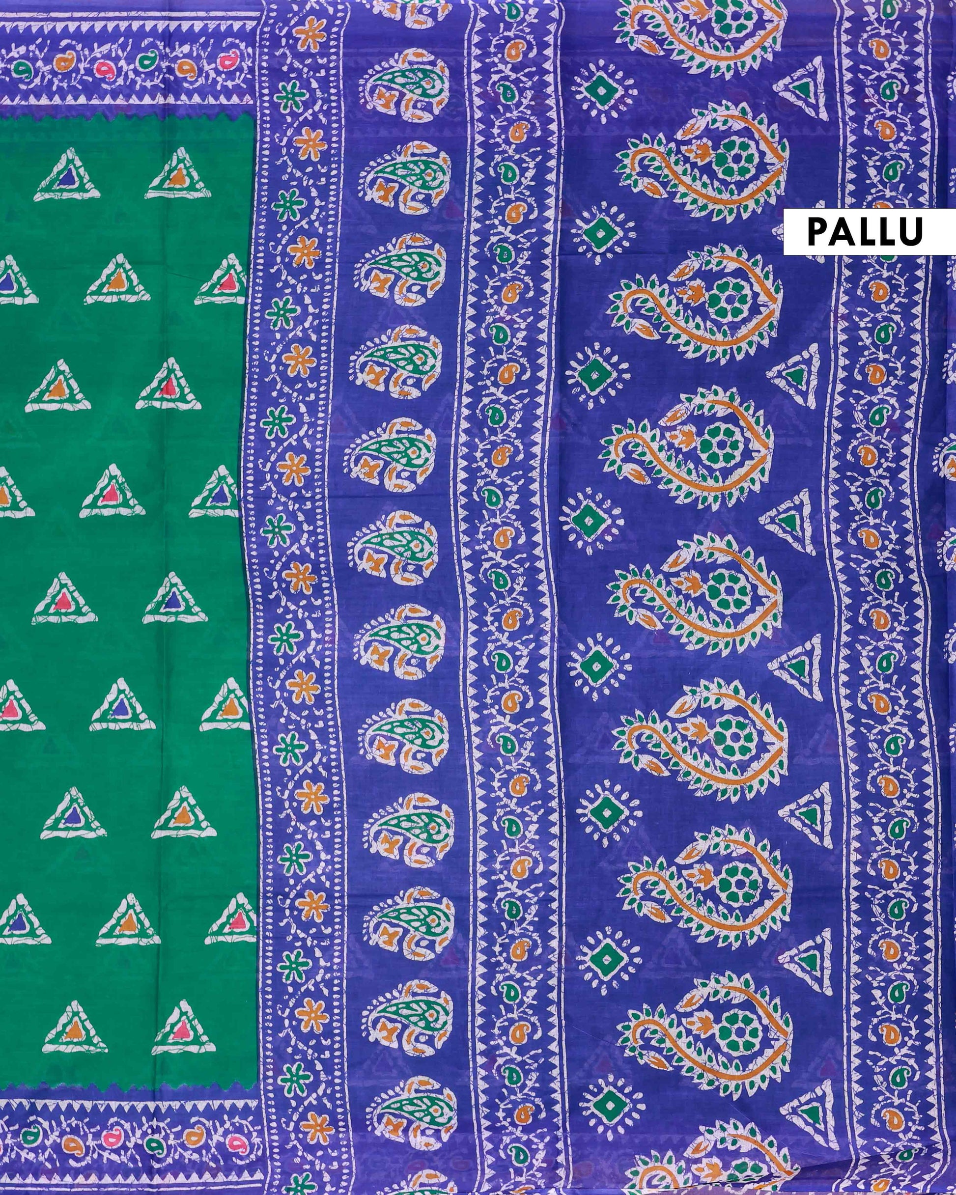- Soft voile cotton saree traditional hand block inspired triangle motifs paired with a contrasting ethnic border for a refined finish.