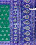 All-Over Floral Printed Voile Saree with Intricate Contrast Border – Green